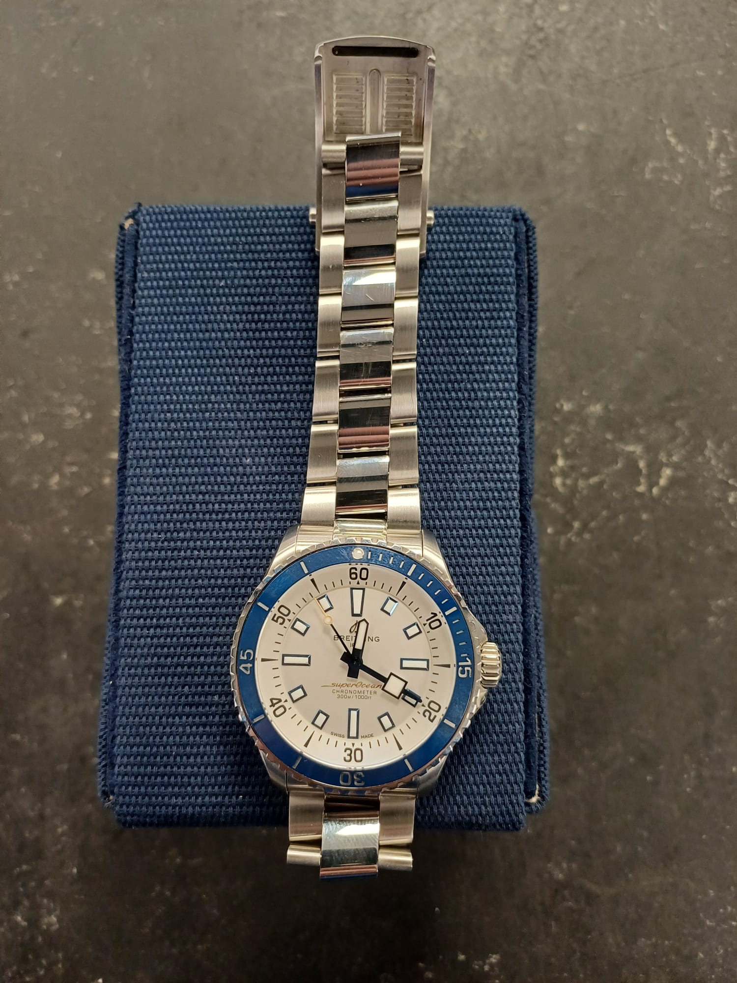 Performance and style for all your water-based pursuits. In the 1960s, the new sport of scuba diving was all the rage. For divers, timing was everything, and Breitling set out to give them the most clear-cut dive watch possible by eliminating any feature that didn’t support their lifesaving needs underwater. This pared-down watch was named the Slow Motion. What remained were clean lines, chunky luminescent indexes, squared-off hands and a high-contrast dial ring, all aimed at maximum legibility. Practical, yes. But what people really fell in love with was the look. The new Superocean retraces the Slow Motion's celebrated design codes, while adding modern features, like a ceramic-inlayed bezel and brightly colored dials. Broad hands and indexes in luminescent Super-LumiNova® allow for easy readability underwater. The watch is water resistant to 300 m (1000 ft), as well as being shock-, sand- and saltwater-resistant. The bronze version uses a special alloy that has excellent resistance to corrosion, yet will still develop a subtle patina over time that makes the watch even more unique. The two strap options (rubber and metal bracelet) have a folding clasp that allows for micro-adjustments of up to 15 mm for easy wear over rashies and wetsuits. Its scratch-proof ceramic inlayed bezel will never wear or fade. For safety, the bezel is uni-directional on most sizes and bi-directional with a patented lock on the 46 mm. Best of all, this is no longer strictly a dive watch—surf with it, swim with it, hit the beach bar with it, then wear it out to dinner. The Superocean perfectly balances the nostalgia of its heritage with a fresh new look.