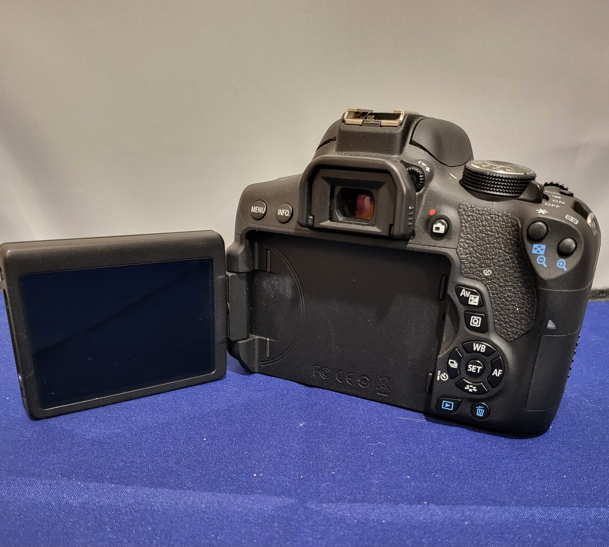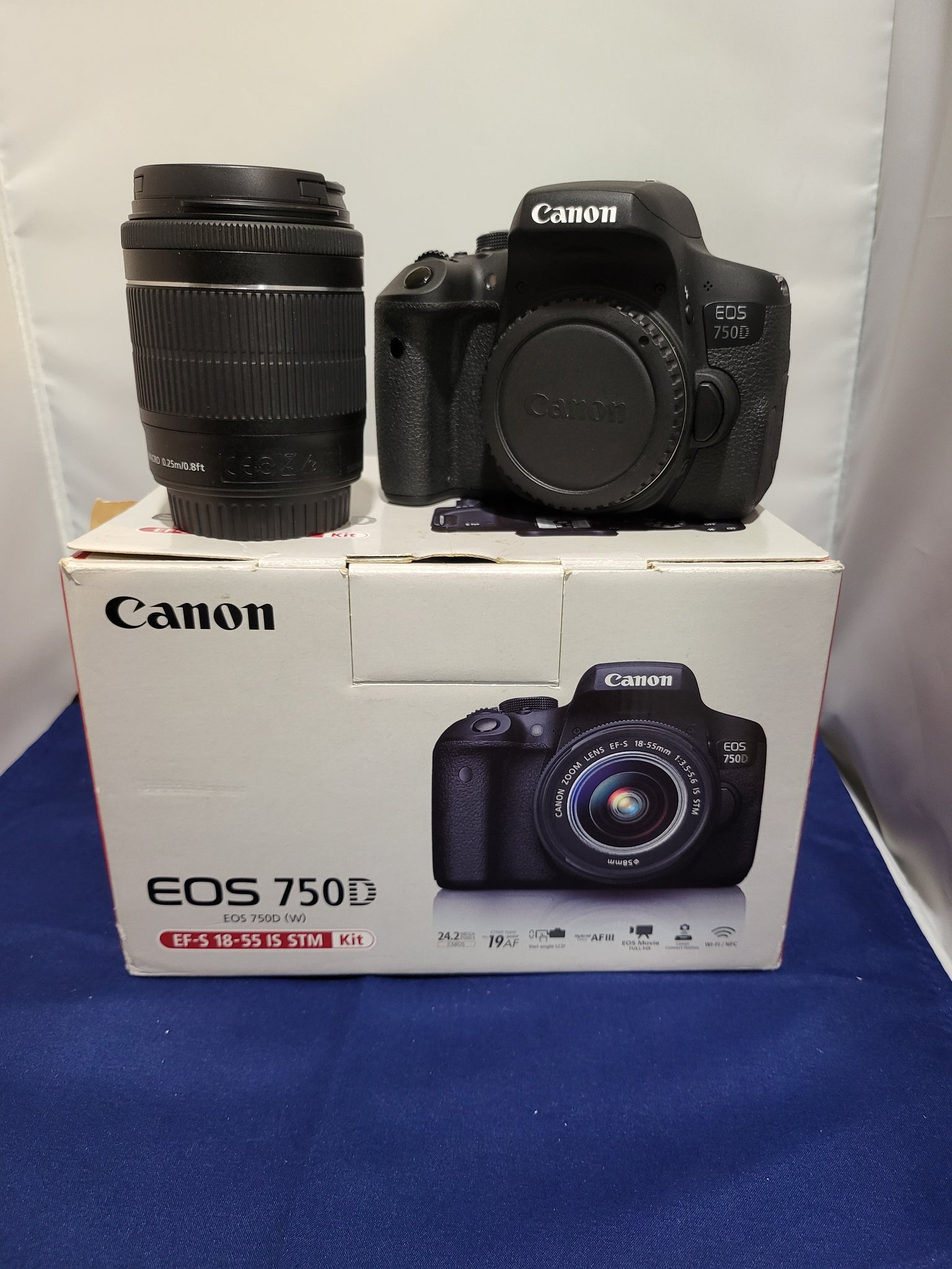 Product Description Range of shooting modes Effortlessly capture stunning images using the latest DSLR technology with Basic and Creative modes, which allow you to take as much or as little control as you like. Moveable screen for creative framing Explore creative shooting angles and enjoy simple and intuitive access to controls using the 3.0" (7.7cm) Vari Angle LCD touch screen Intelligent Viewfinder EOS 750D features an Intelligent Viewfinder which gives a much enhanced shooting experience. As you look through the viewfinder you can more easily see the focus point and any active AF areas, also the shooting information is clearly displayed. 19 all cross-type AF points for accurate subject tracking Keep track of fast moving action thanks to a fast and accurate autofocus system comprising 19 cross-type AF points. Great low light shots Take memorable low light pictures without using flash thanks to a large ISO sensitivity range of ISO 100-12800 (extendable to ISO 25600) Technical Details: 24.2 Mega Pixels 3 inch, 1040000 pixels, TFT Canon EF/EF-S lens mount CMOS image sensor Autofocus 30-1/4000 sec. shutter speed Scene Intelligent Auto (Stills and Movie), No Flash, Creative Auto, Portrait, Landscape, Close-up, Sports, SCN(Kids, Food, Candlelight, Night Portrait, Handheld Night Scene, HDR Backlight Control), Program AE, Shutter priority AE, Aperture priority AE and Manual (Stills and Movie) shooting modes SD / SDHC / SDXC card support USB, Supports Direct Print (PictBridge), Audio/video output connector (NTSC or PAL can be selected), HDMI micro connector, external microphone interfaces 131.9 x 100.7 x 77.8 mm
