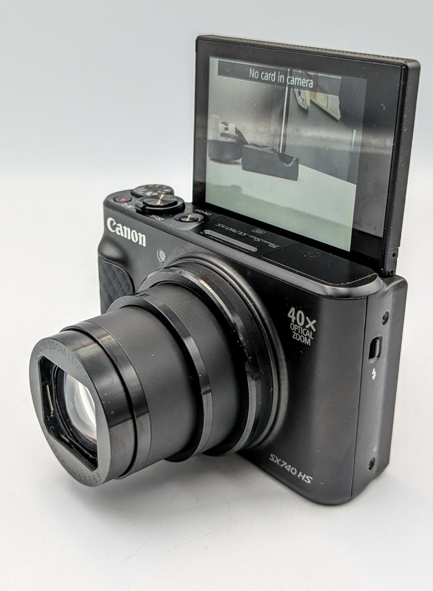 Pack your images with a punch straight from your pocket with the 39.9mm-deep, compact Canon PowerShot SX740 HS. You can capture extraordinary detail in 20.3 Megapixels with 40x optical zoom and easily share via Wi-Fi and Bluetooth. Make movies on the go with impressive 4K resolution and use the DIGIC 8 processor to produce the perfect still. Small but mighty, this point-and-shoot camera boasts incredibly responsive shutter release and 10 fps continuous shooting, so youll never miss a shot.