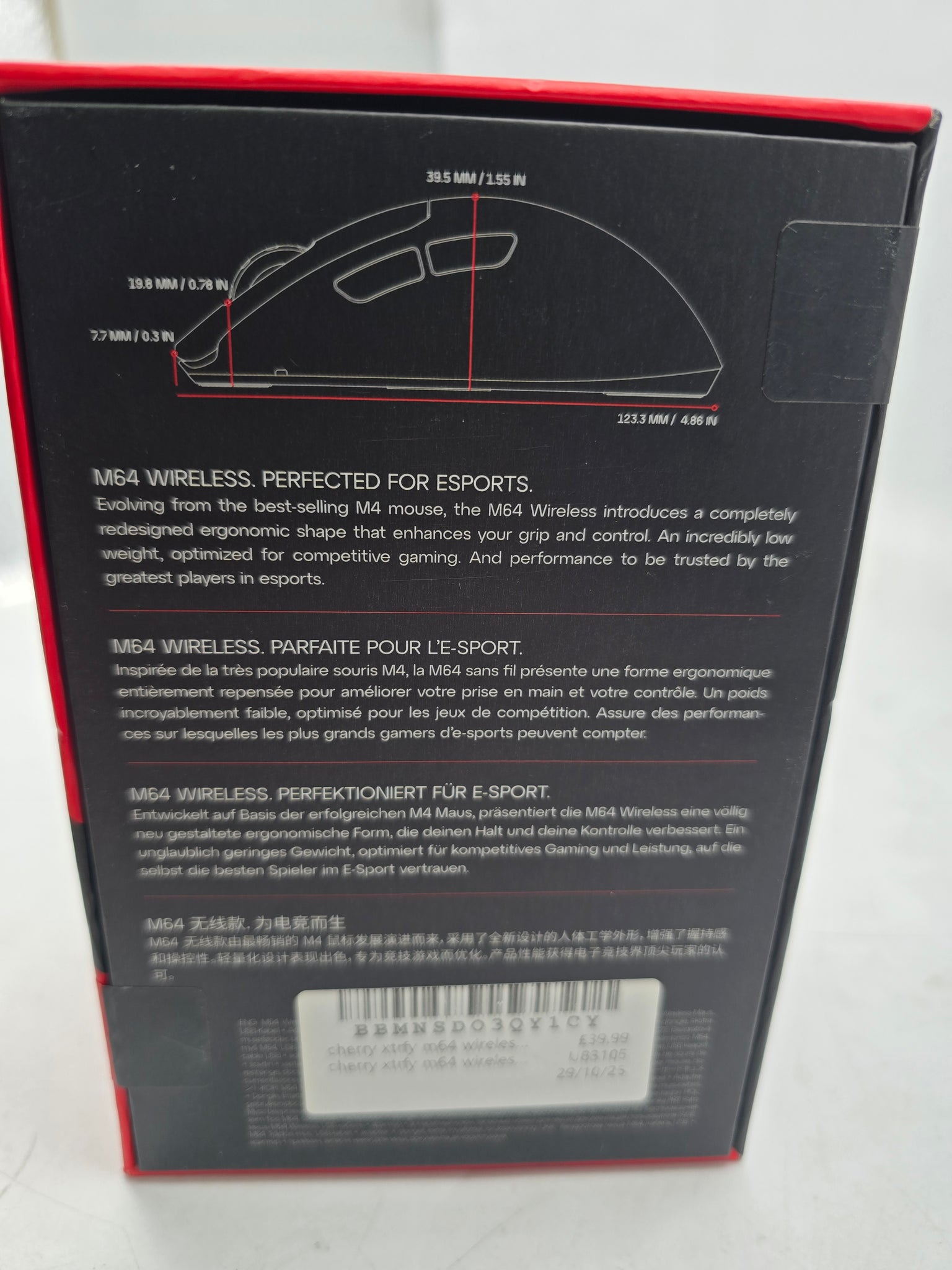 Experience seamless navigation with the Cherry M64 Wireless Mouse. This ergonomic and stylish mouse offers a comfortable grip, precise tracking, and features advanced 2.4 GHz wireless connectivity for lag-free performance. The Cherry M64 is compatible with various devices, making it the ideal accessory for both work and play. Enhance your productivity with its long-lasting battery life and sleek design, perfect for home, office, or on-the-go use. still sealed in box