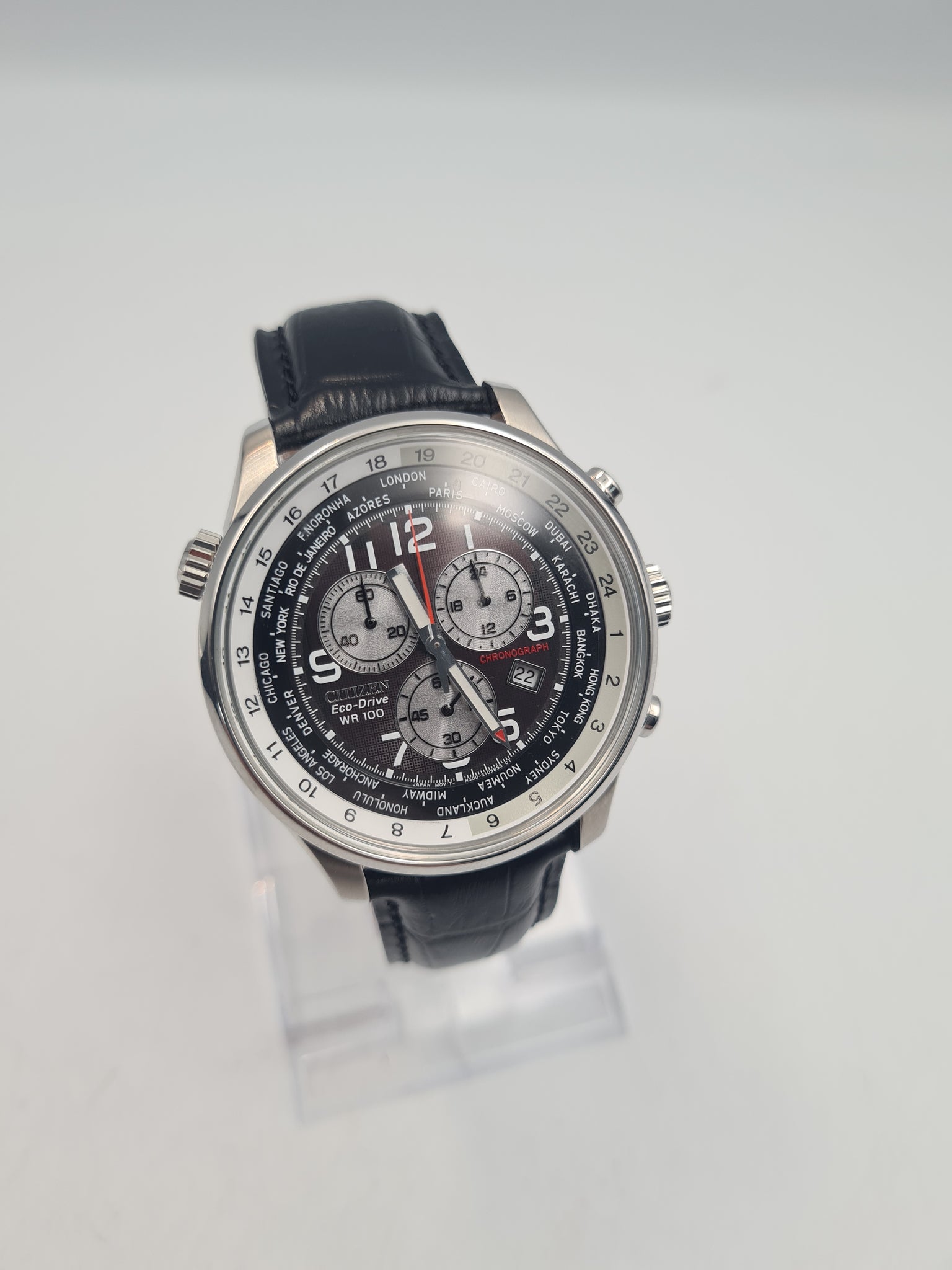 Citizen eco-drive (solar) Chronograph Men's stainless steel watch with black leather Strap BOXED