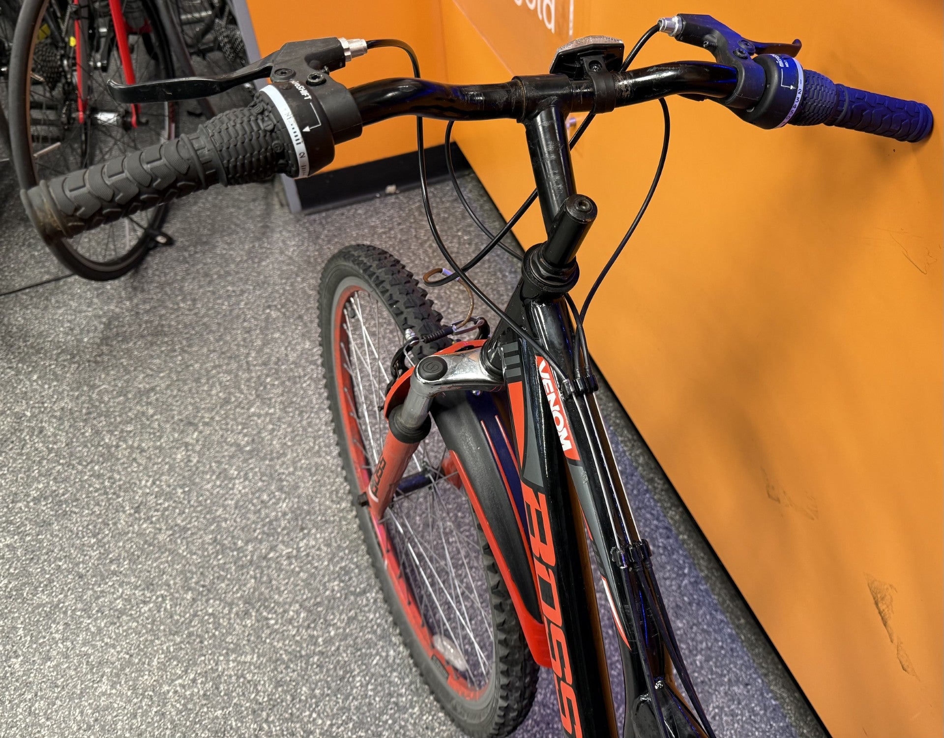 The Boss Venom is a steel framed full suspension bike with 26" wheels, zoom front and rear suspension, front and rear v-brakes and a 3x7 21-speed Shimano drivetrain. It provides a responsive and comfortable ride over off-road terrain and the tyres behave well on varied surfaces and in varied weather.