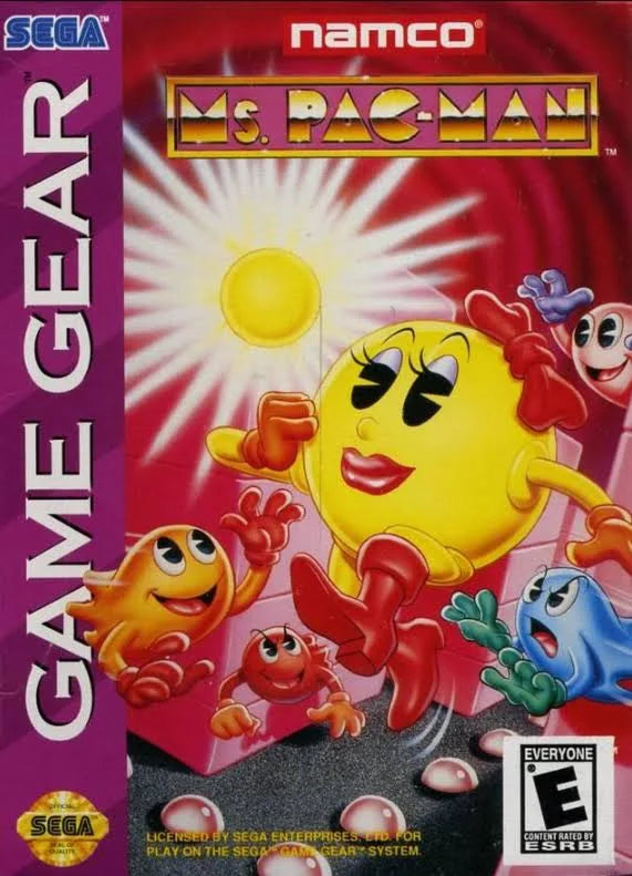 Pac-Man for the Game Gear is a portable adaptation of the classic arcade game, released in 1991. As an iconic maze chase video game, players navigate Ms. Pac-Man through various mazes, gobbling up dots and fruit while avoiding four cunning ghosts. Its Game Gear version retains many of the original's features, including its vibrant mazes and challenging gameplay. The objective is to clear each maze of dots and fruit while using power pellets to make the ghosts vulnerable. Pac-Man was praised for its enhancements over the original Pac-Man, including more complex mazes and improved ghost A.I., solidifying its place as a timeless classic in the video game genre.