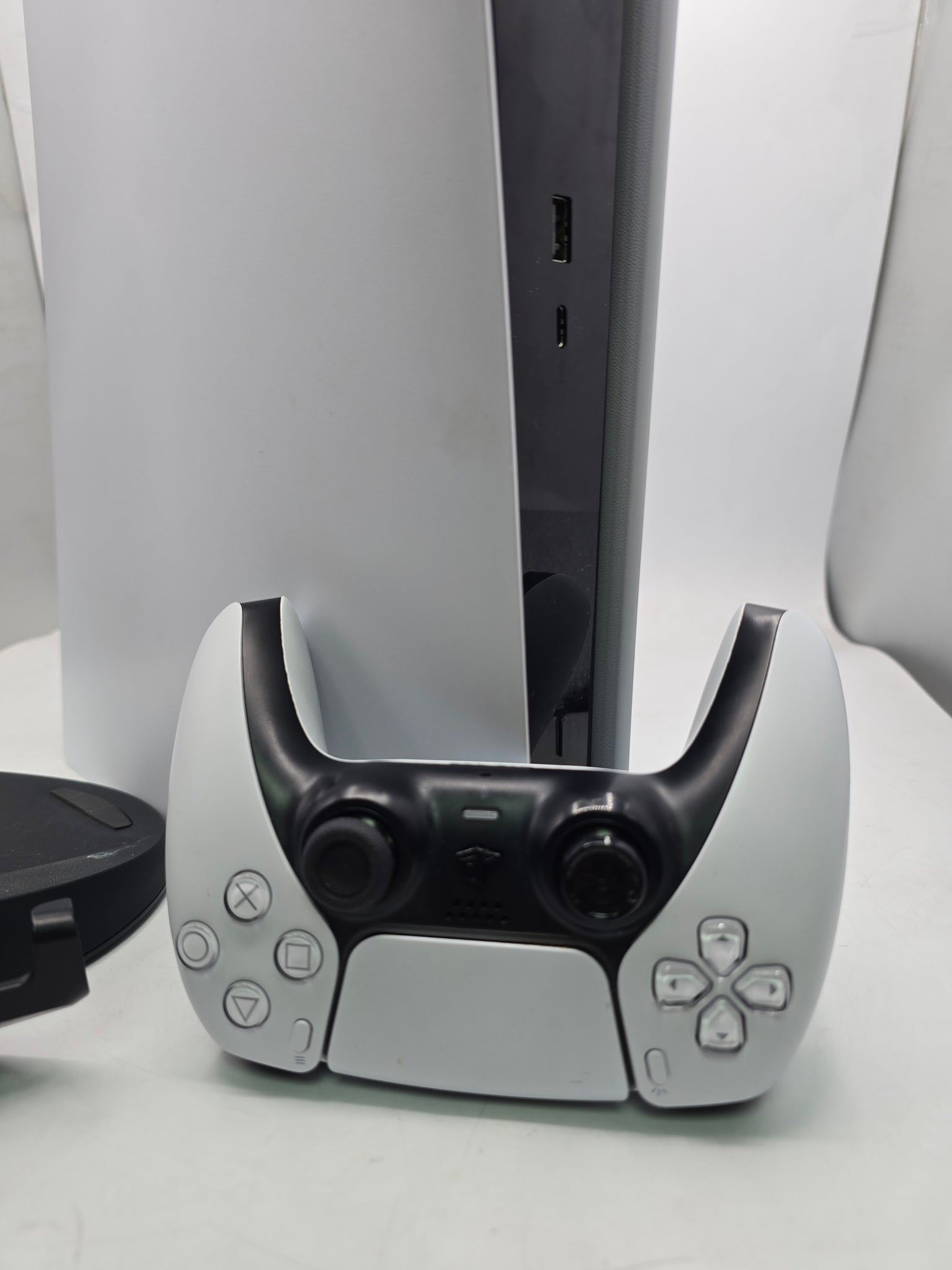 Ultra-High Speed SSD Maximize your play sessions with near instant load times for installed PS5 games. Integrated I/O The custom integration of the PS5 console's systems lets creators pull data from the SSD so quickly that they can design games in ways never before possible. Ray Tracing Immerse yourself in worlds with a new level of realism as rays of light are individually simulated, creating true-to-life shadows and reflections in supported PS5 games. 4K-TV Gaming Play your favourite PS5 games on your stunning 4K TV. Up to 120fps with 120Hz Output Enjoy smooth and fluid high frame rate gameplay at up to 120fps for compatible games, with support for 120Hz output on 4K displays. HDR Technology With an HDR TV, supported PS5 games display an unbelievably vibrant and lifelike range of colours. 8K Output PS5 consoles support 8K Output, so you can play games on your 4320p resolution display. Tempest 3D Audio Tech Immerse yourself in soundscapes where it feels as if the sound comes from every direction. Through your headphones or TV speakers your surroundings truly come alive with Tempest 3D Audio Tech in supported games Haptic Feedback Experience haptic feedback via the Dual Sense wireless controller in select PS5 titles and feel the effects and impact of your in-game actions through dynamic sensory feedback. Adaptive Triggers Get to grips with immersive adaptive triggers, featuring dynamic resistance levels which simulate the physical impact of in-game activities in select PS5 games. boxed, with charger and lead