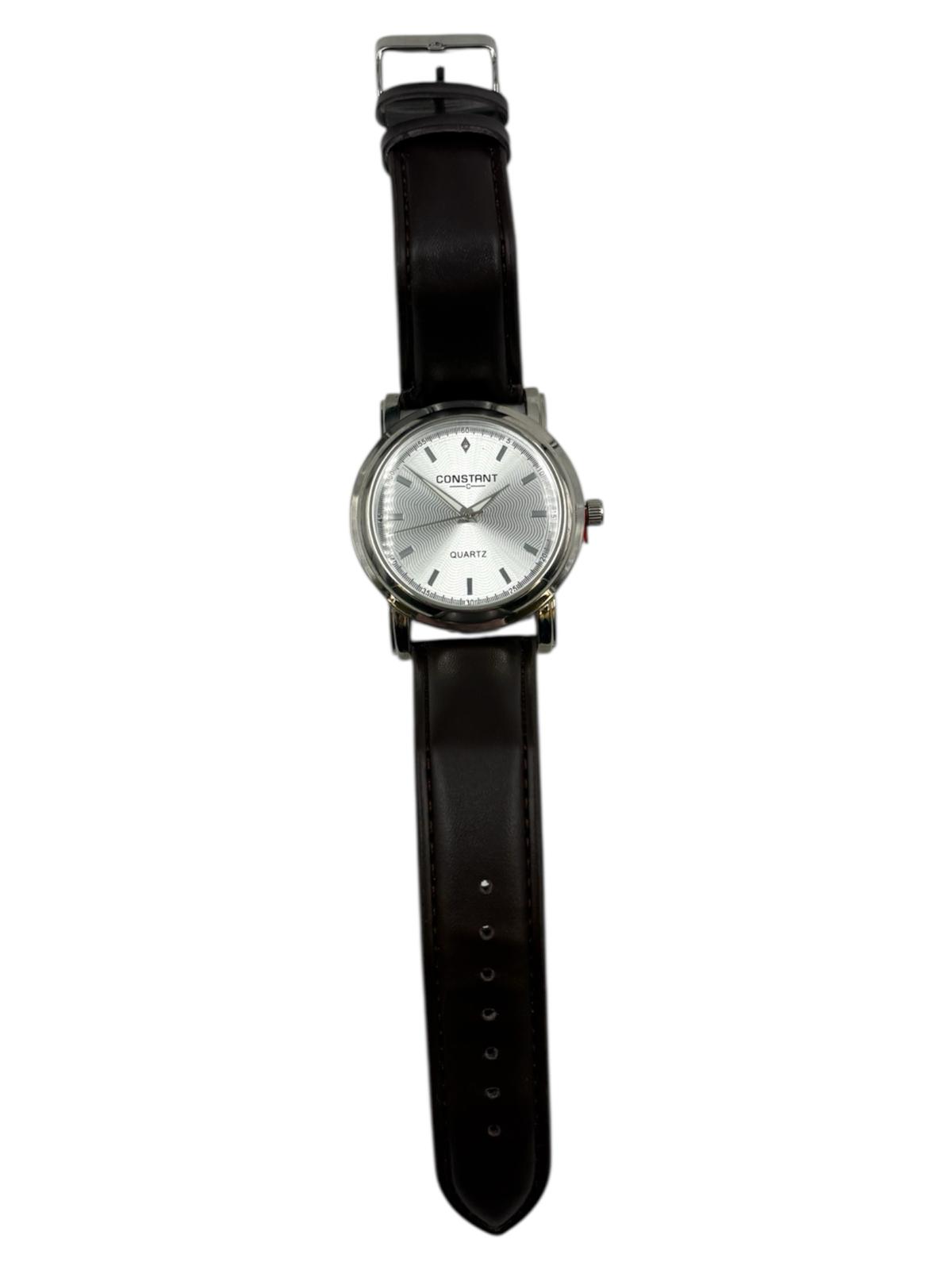 Constant Quartz S565S, Maroon quality leather strap with a silver numberless watch face for a sleek design