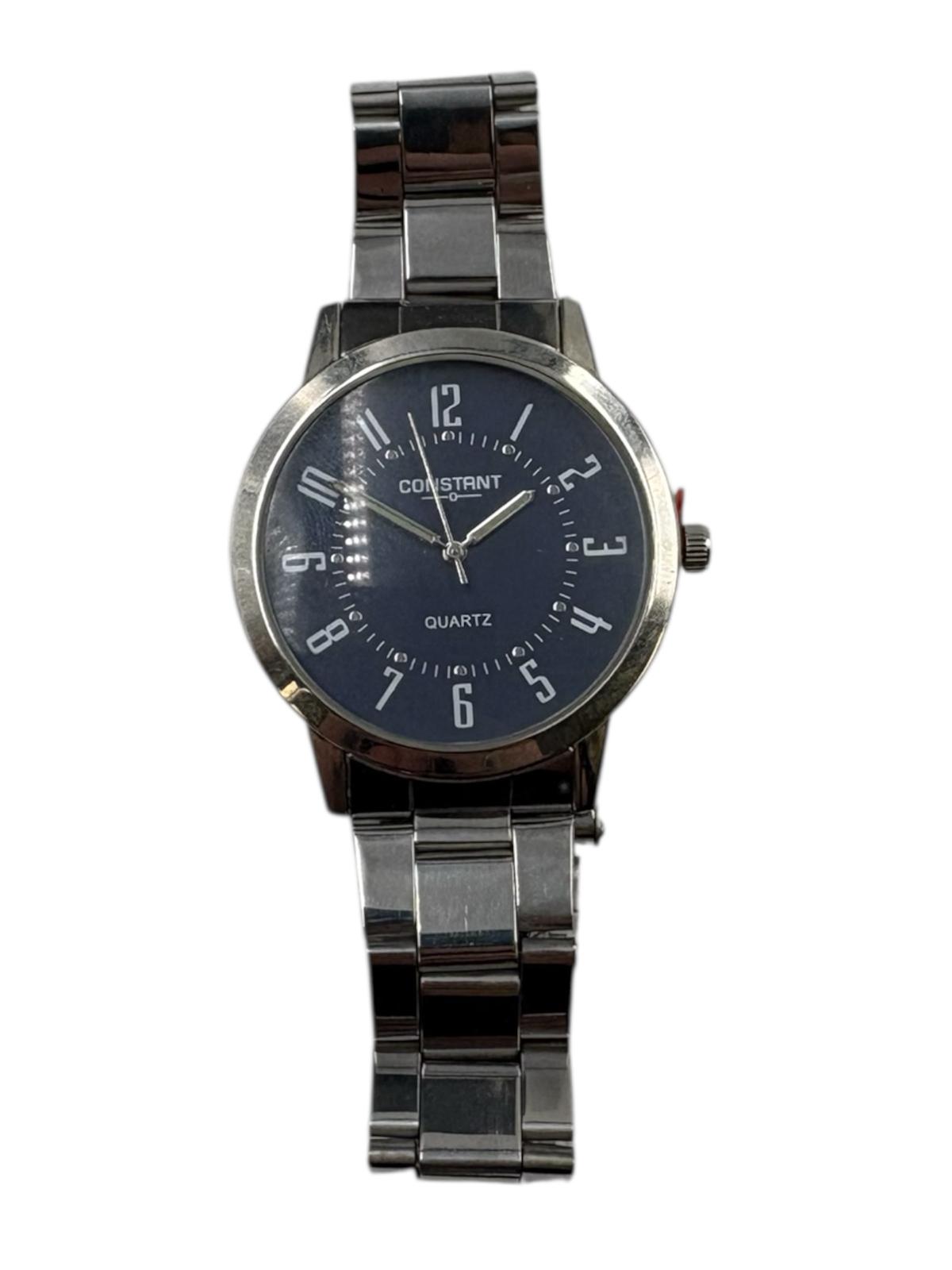 Constant Quartz S565S silver watch. All metal watch with a silver band and watch case and dark blue face