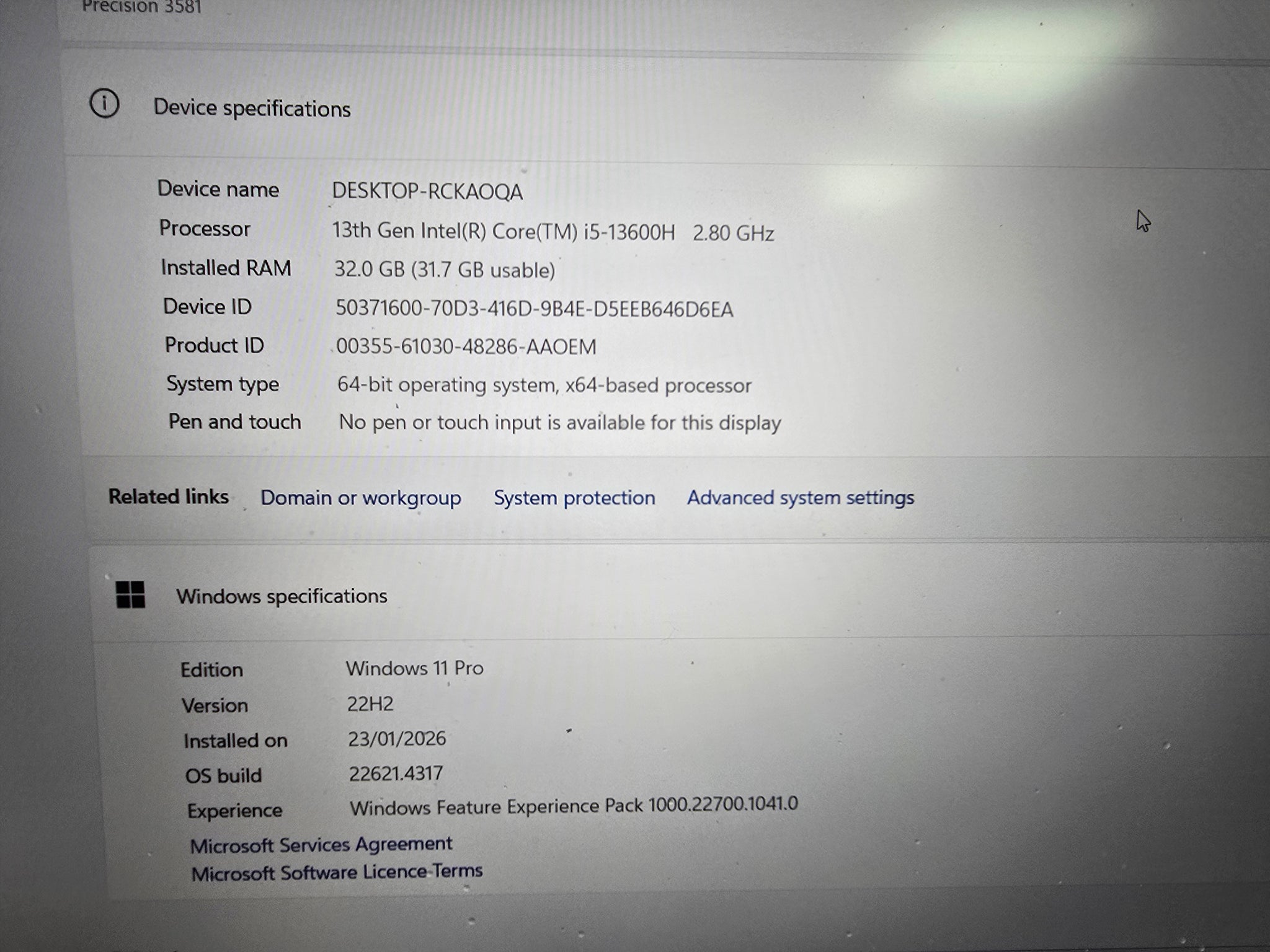 dell precision 3581 laptop 32gb 500gb core i5 windows 11 pro unboxed, good condition