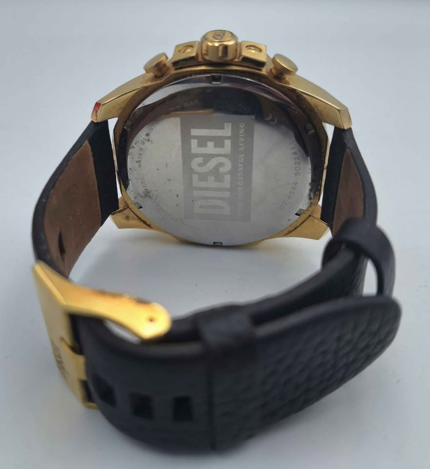 DIESEL Mega Chief Quartz Movement With Black Leather Strap & Original Box