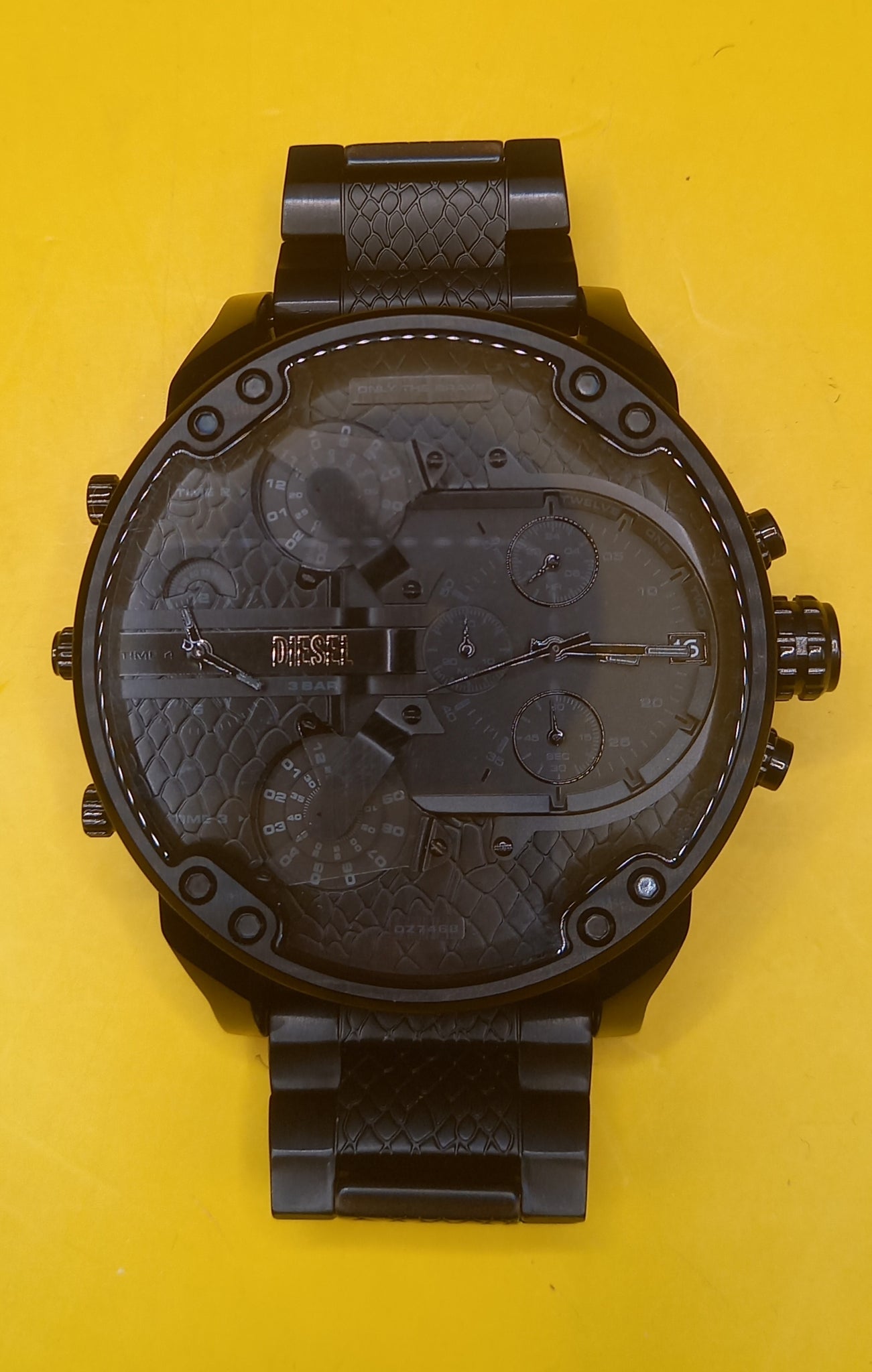 Men's Diesel Mr Daddy 2.0 DZ7468 Stainless Steel Watch The Diesel Mr Daddy 2.0 DZ7468 watch is a robust and stylish accessory designed for the modern man. With its strong stainless steel build and bold aesthetics, this watch is a true statement piece. Perfectly crafted for those who appreciate a blend of functionality and fashion, the Mr Daddy 2.0 collection never fails to impress. Design and Build The Diesel Mr Daddy 2.0 DZ7468 features a solid stainless steel case and band, ensuring durability and long-lasting wear. The watch boasts a striking black dial with contrasting red and white accents, making it an eye-catching accessory. Its large case size is not just for show; it underscores its bold design, perfect for making a lasting impression. Features and Functions This Diesel watch offers multiple time zone functionality, making it an excellent choice for frequent travelers or those who work internationally. The chronograph feature enhances its utility, providing precise timekeeping for various activities. Additionally, the watch is water-resistant up to 3 ATM, protecting it against minor splashes and rain. Comfort and Wearability Despite its hefty appearance, the Diesel Mr Daddy 2.0 DZ7468 has been designed with wearability in mind. The stainless steel band is adjustable, providing a secure and comfortable fit for wrists of all sizes. The watch's innovative clasp ensures it stays in place throughout the day, giving you peace of mind.