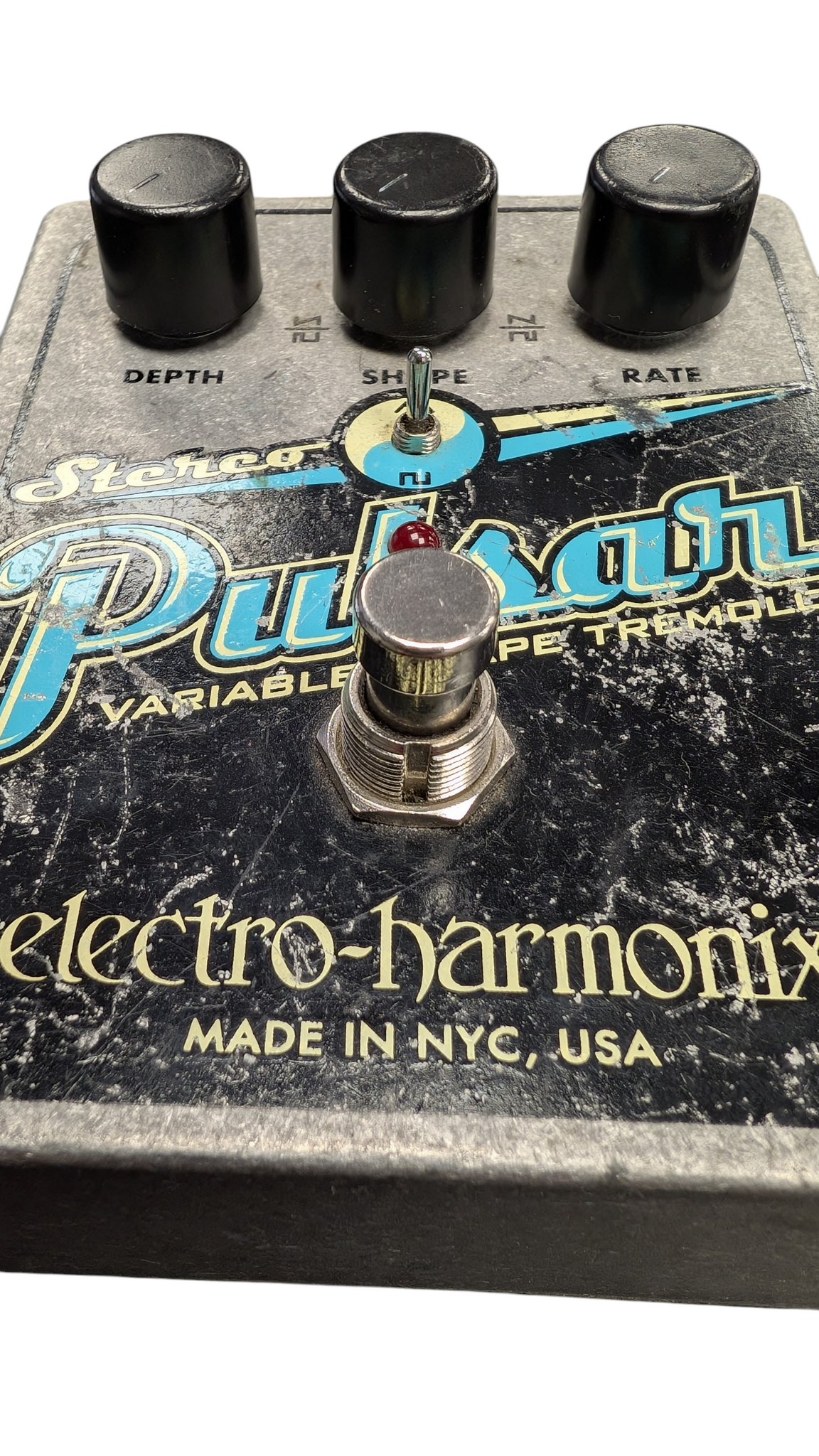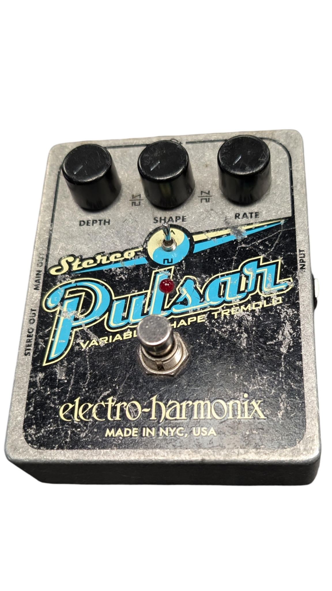 Variable shape tremolo. Large amounts of control over the wave shape. Depth and Rate knobs. 9v battery included. Solid metal enclosure and true bypass. Get a range of tremolo tones with the EHX Stereo Pulsar. From subtle and vintage to experimental and out there- you'll be able to get the tones you're after with this pedal. The sheer amount of control you have means it works very well with other pedals - some other tremolo pedals sound good - but only in isolation. Also can be used with other instruments such as keyboards.