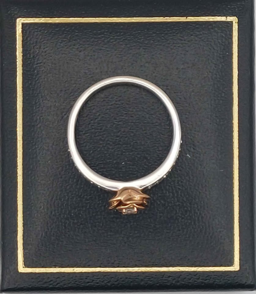 Part Silver, Part 9k Gold, 0.2 CT DIA Enchanted Disney fine jewellery rose gold diamond belle dainty rose ring size 9