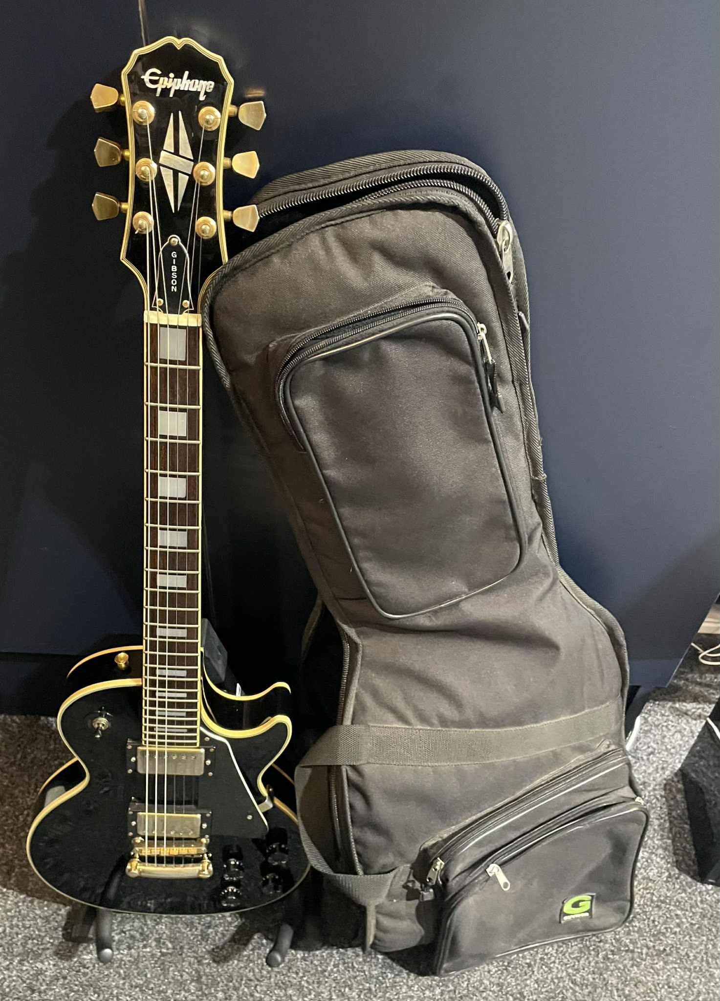 Inspired by Gibson Collection Body: Mahogany Neck: Mahogany Fingerboard: Ebony Pearloid Block fingerboard inlays Neck profile: SlimTaper 5-Ply body binding Scale: 629 mm (24.75") Nut width: 43 mm (1.693") 22 Frets Pickup: 2 Epiphone Probucker Custom Humbucker 2 Volume and 2 tone controls 3-Way switch LockTone Tune-O-Matic bridge Stopbar tailpiece Gold hardware Colour: black Includes bag