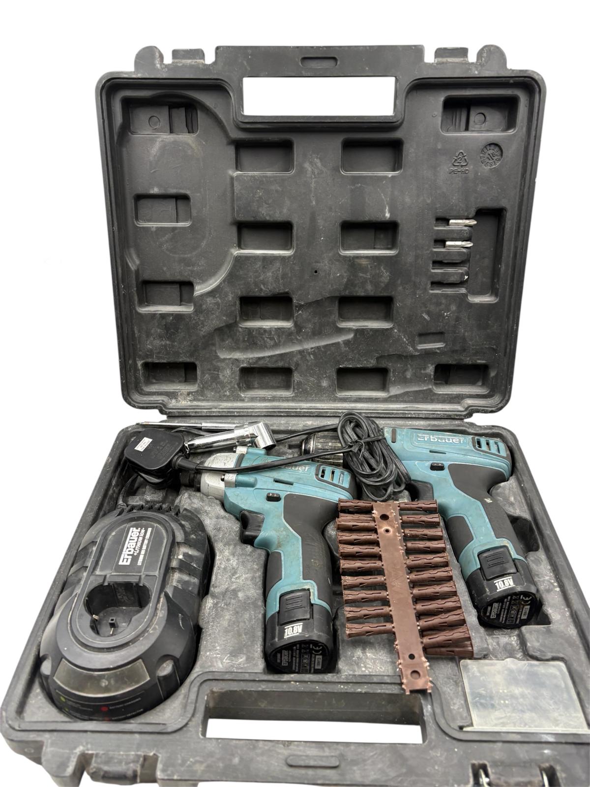 Erbauer lithium ion 10.8V combi drill (ERP407DDH) and impact driver (ERP406IPD) with 2 10.8V batteries and a charger