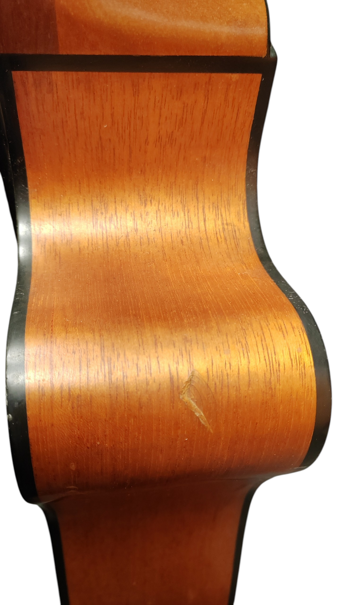 6 String guitar Right handed Marks and chips on the body and head of the guitar. One string missing.