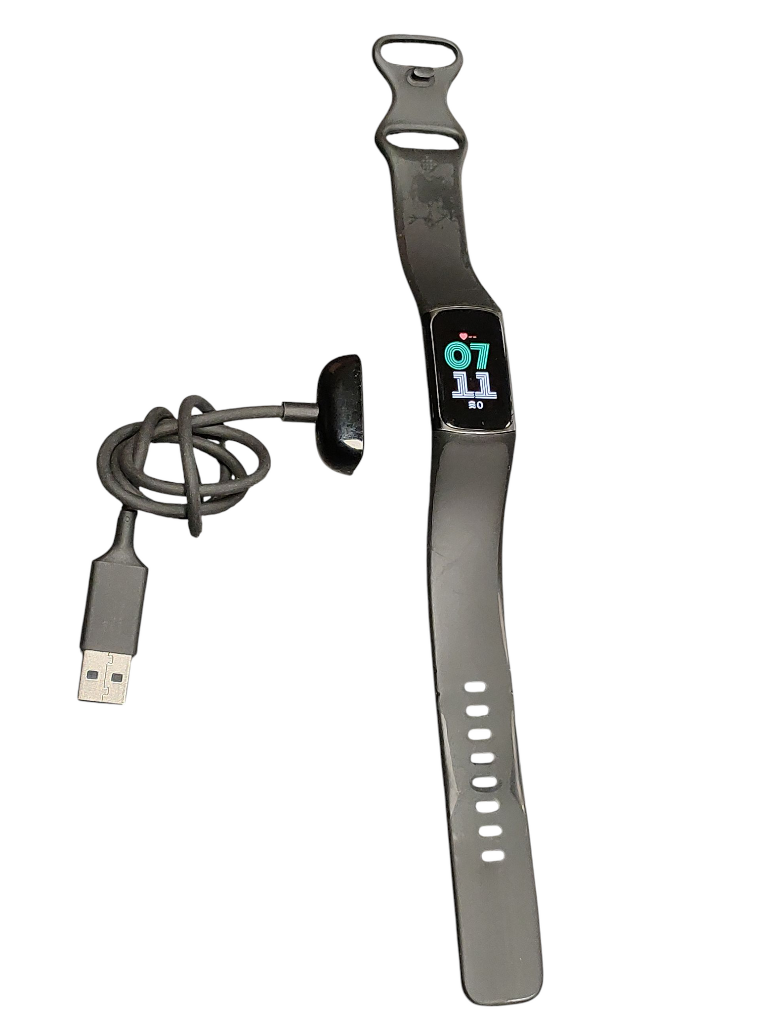 Comes with charging lead, In good condition has some light minor marks on the strap but in good working order.