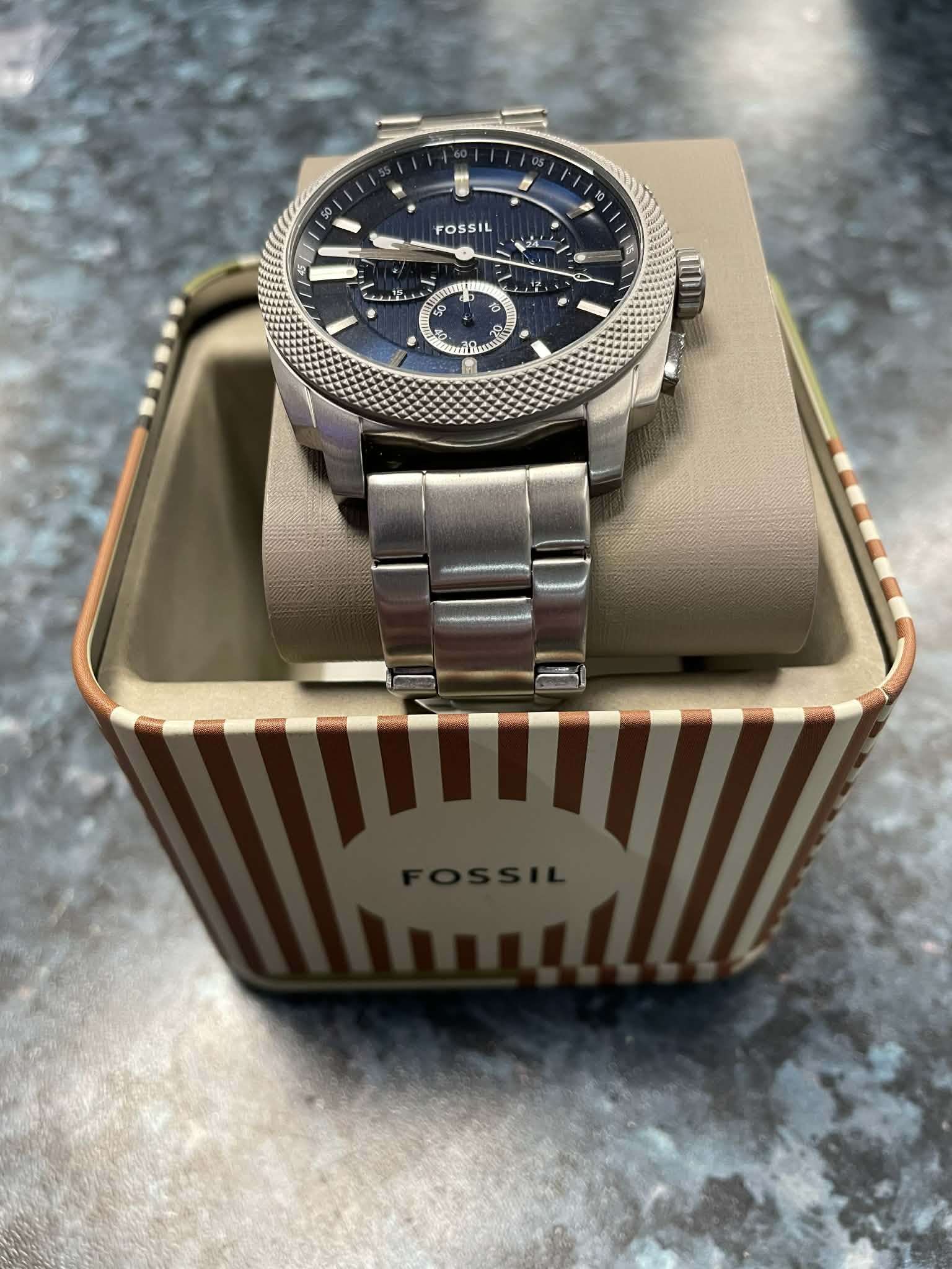 Fossil Watch Model: FS6096 Stainless steel. Comes with the box. Good condition.