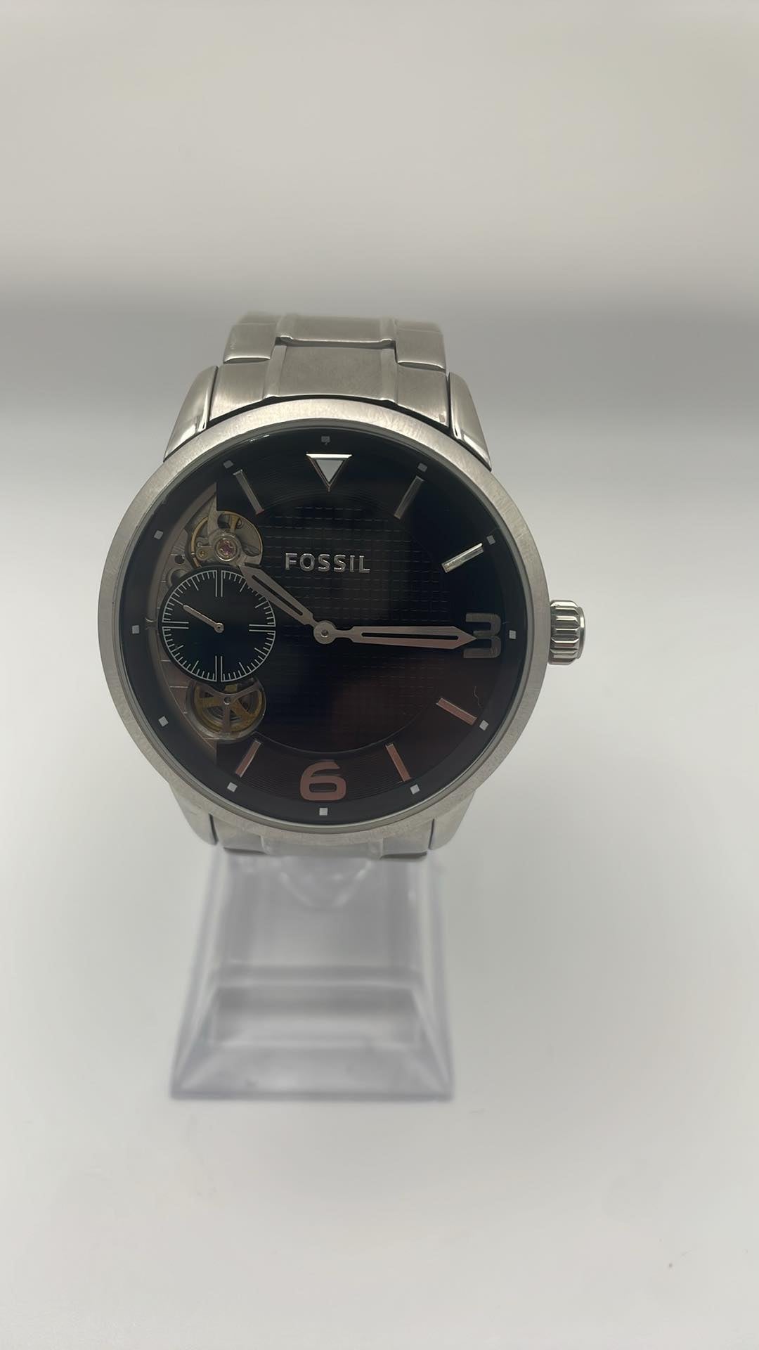 mens fossil watch stainless steel 5 atm water resistant good condition unboxed