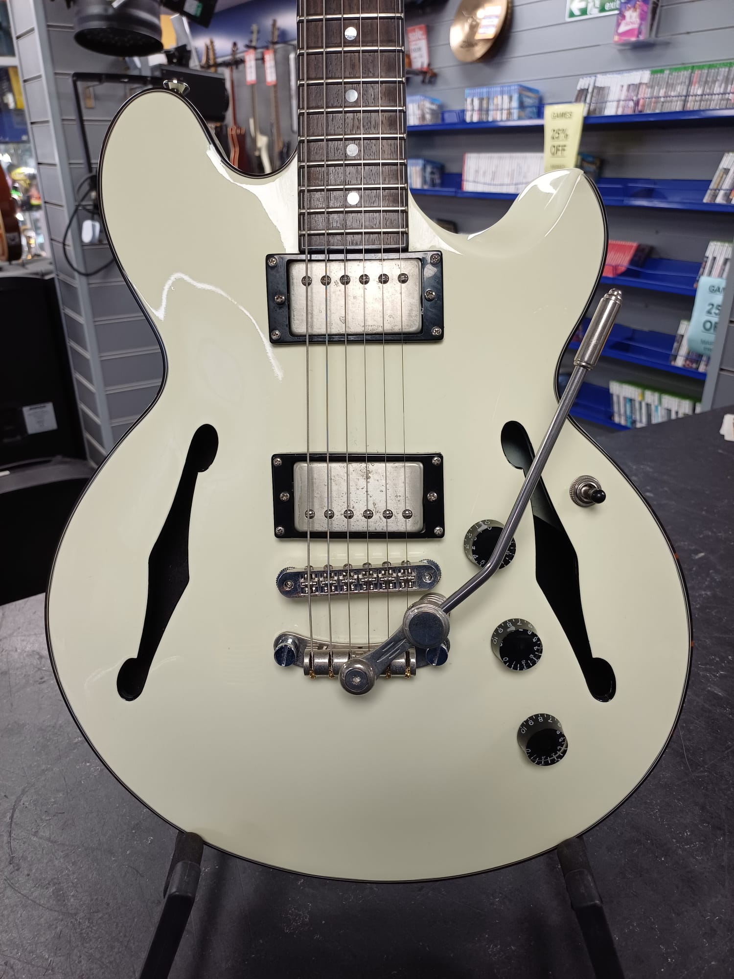 Fret King Elise Semi-Acoustic Guitar 🎸 🌟 Vintage Vibes, Rich Tone The Fret King Elise blends classic semi-acoustic design with modern playability. Perfect for jazz, blues, and fingerstyle players seeking warm, resonant tones. 💻 Key Features: - Semi-Hollow Body: Rich, warm acoustic sound with electric versatility. - Dual Pickups: Blend acoustic and electric tones. - Bigsby-Style Tremolo: Add expressive pitch bends. 🔌 Extras: - Cutaway design for easy access to higher frets - Includes gig bag