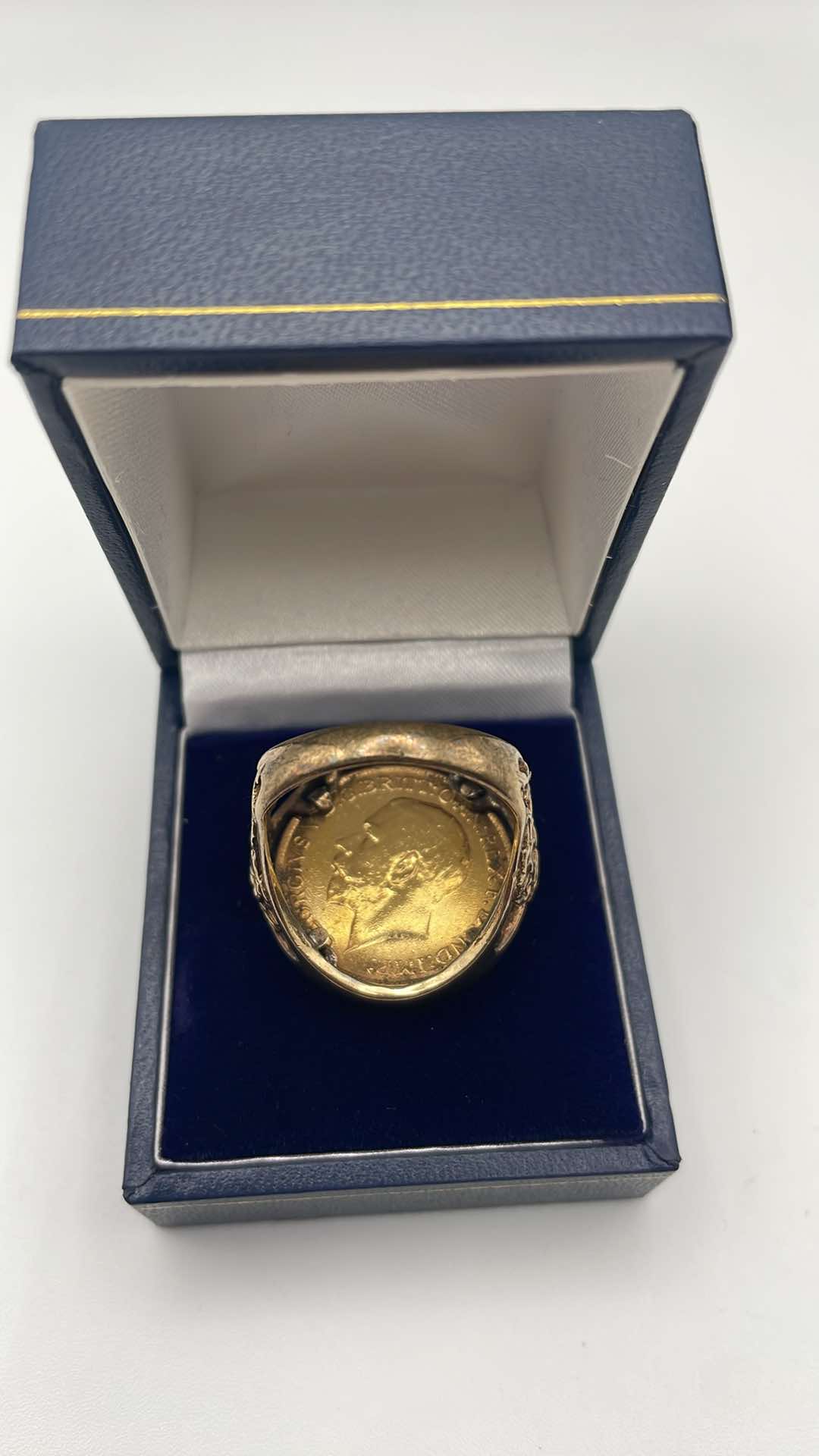 1925 full sovereign ( 22ct ) ring 9ct approximately 14.5G good condition comes boxed Size S