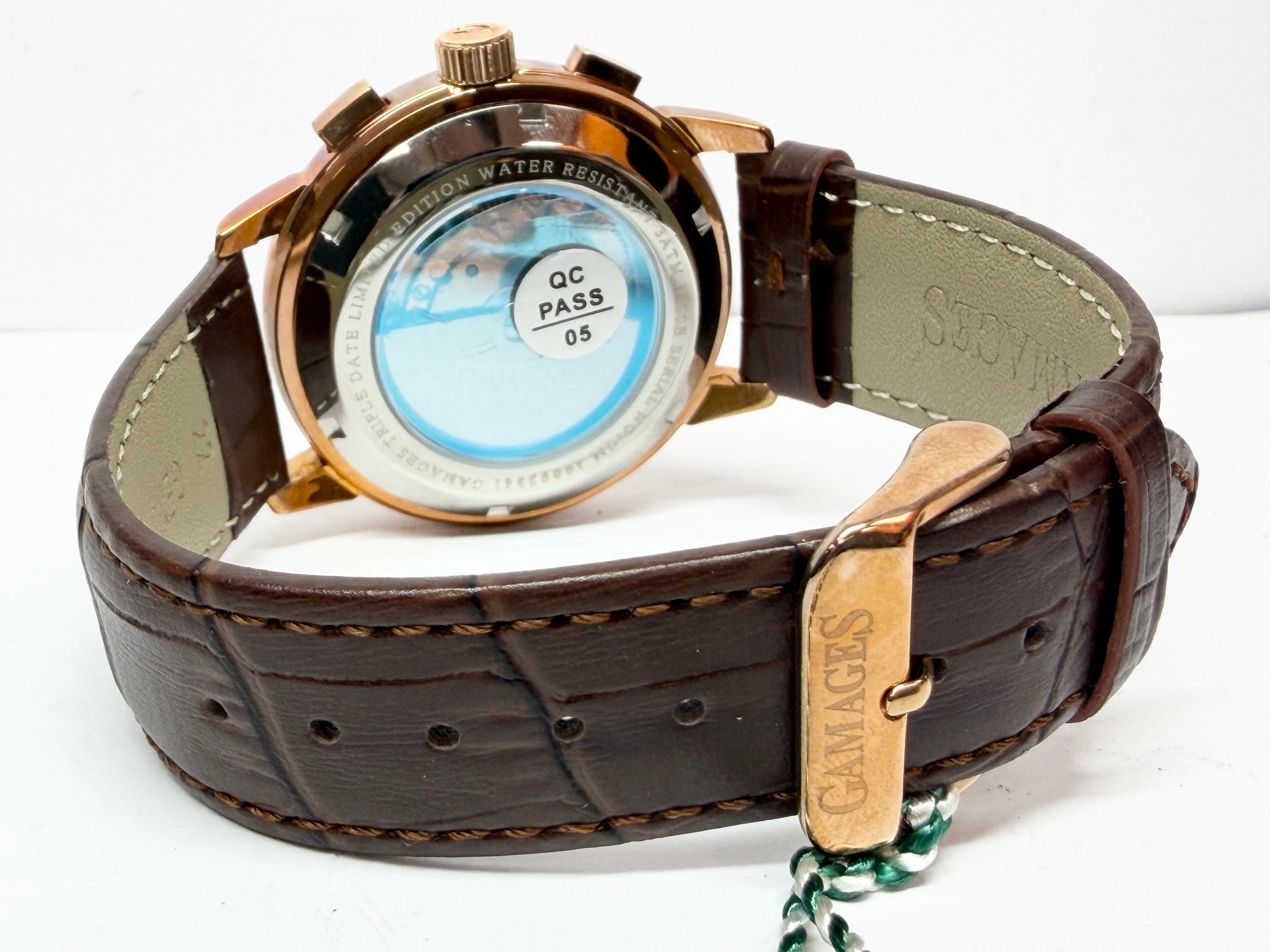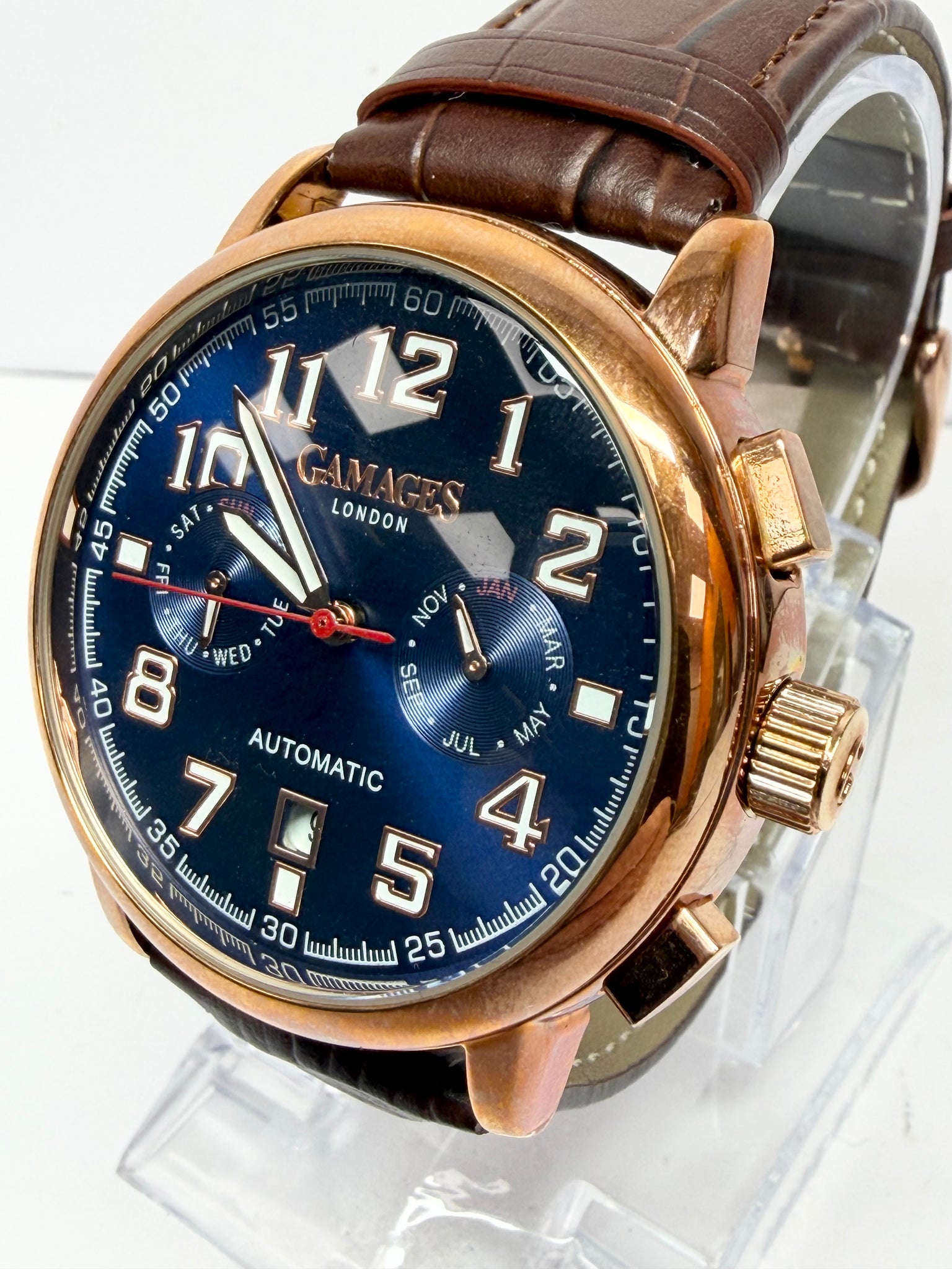 Stunning men’s automatic limited edition triple date GAMAGES London watch boxed with card. Gamages of London originated from a department store in London established in the 1870s, which was known for its watches and clocks. The brand continues this legacy by focusing on traditional British craftsmanship combined with modern technology in its timepieces