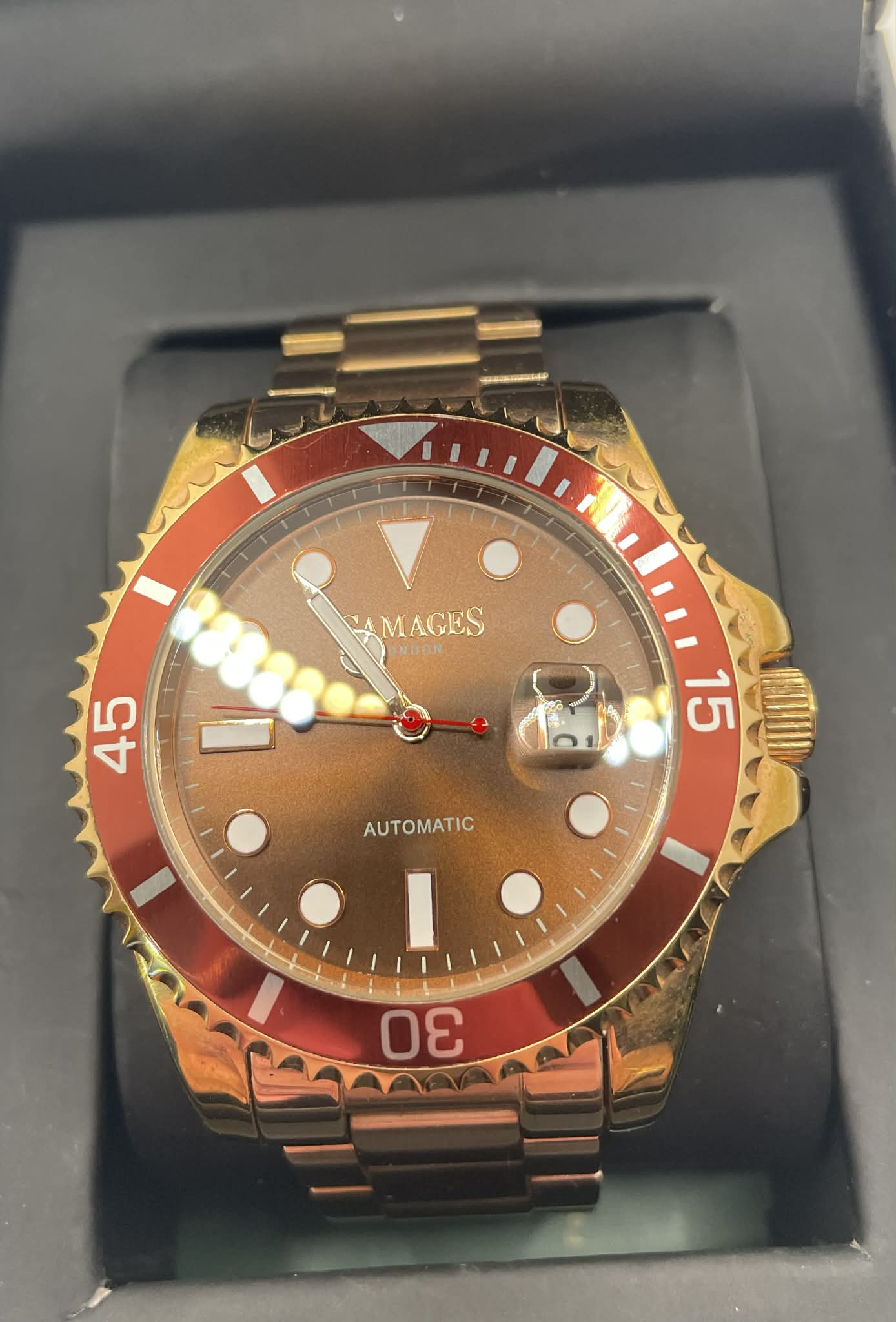Gamages of London Watch Sports Element Limited Edition Comes boxed and with 2 links. Water resistant 3ATM. Automatic movement – no battery needed. Minor cosmetic wear.