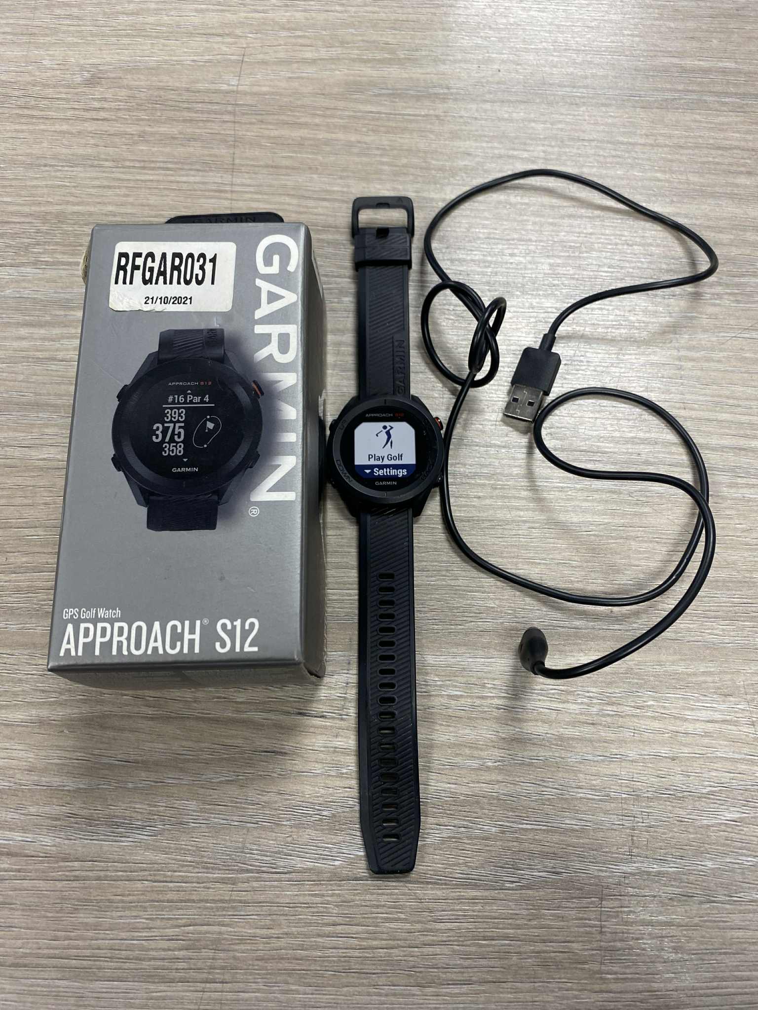 GARMIN APPROACH S12 Great working condition Comes boxed & includes all manuals Comes with charger Preloaded with 42,000+ courses Accurate distances to front,middle,back of green/hazard & dogleg distances Up to 30hr battery life in gps mode