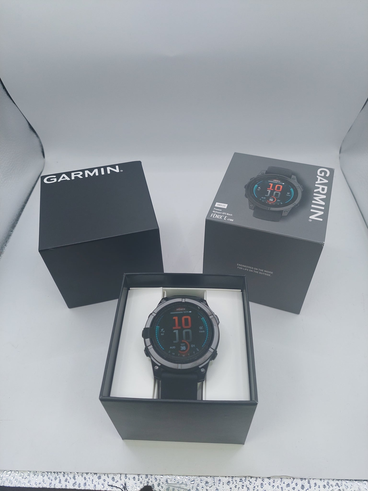 The Garmin Fenix E (47mm, Slate Grey/Black) is a premium multisport GPS smartwatch featuring a 1.3” AMOLED touchscreen display, stainless steel bezel, and up to 16 days of battery life. Designed for health monitoring and advanced training, it includes GPS, multi-GNSS, heart rate monitoring, and 16GB of storage
