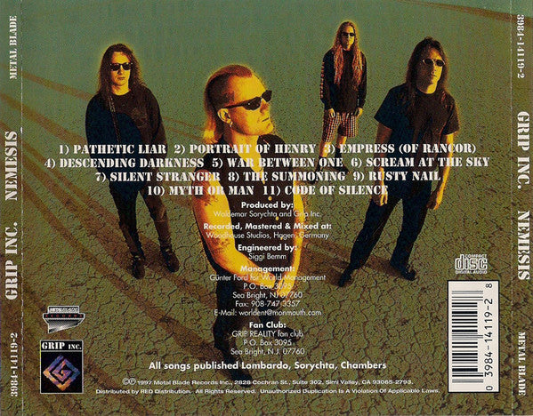 1 Pathetic Liar Lyrics By – Gus Chambers Music By – Waldemar Sorychta 3:03 2 Portrait Of Henry Lyrics By – Gus Chambers Music By – Dave Lombardo, Waldemar Sorychta 1:29 3 Empress (Of Rancor) Lyrics By – Gus Chambers Music By – Jason Viebrooks, Waldemar Sorychta 3:35 4 Descending Darkness Lyrics By – Gus Chambers Music By – Waldemar Sorychta 2:01 5 War Between One Lyrics By – Gus Chambers Music By – Waldemar Sorychta 2:16 6 Scream At The Sky Lyrics By – Gus Chambers Music By – Dave Lombardo, Waldemar Sorychta 4:47 7 Silent Stranger Lyrics By – Gus Chambers Music By – Dave Lombardo, Waldemar Sorychta 2:54 8 The Summoning Lyrics By – Gus Chambers Music By – Waldemar Sorychta 4:28 9 Rusty Nail Lyrics By – Gus Chambers Music By – Waldemar Sorychta 3:24 10 Myth Or Man Lyrics By – Gus Chambers Music By – Dave Lombardo, Jason Viebrooks, Waldemar Sorychta 3:44 11 Code Of Silence Lyrics By – Gus Chambers Music By – Waldemar Sorychta 6:02