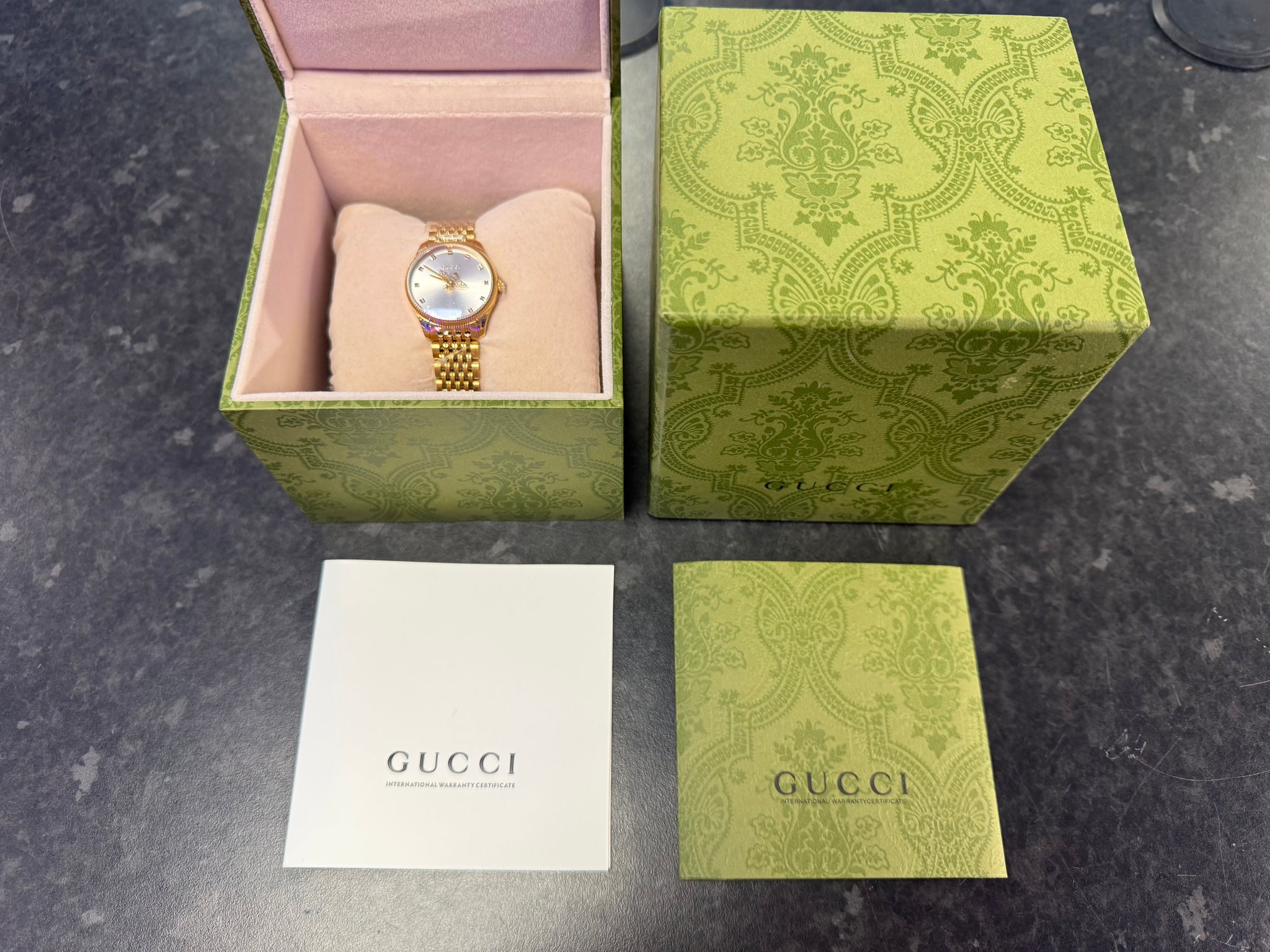 Here we have a Gucci G-Timeless Ladies watch in very good condition with original strap with cellophane still attached, comes with box and paper work/tag. ********* ***For any queries please call our Chorley store direct from Mon-Sat on 01257 752333.