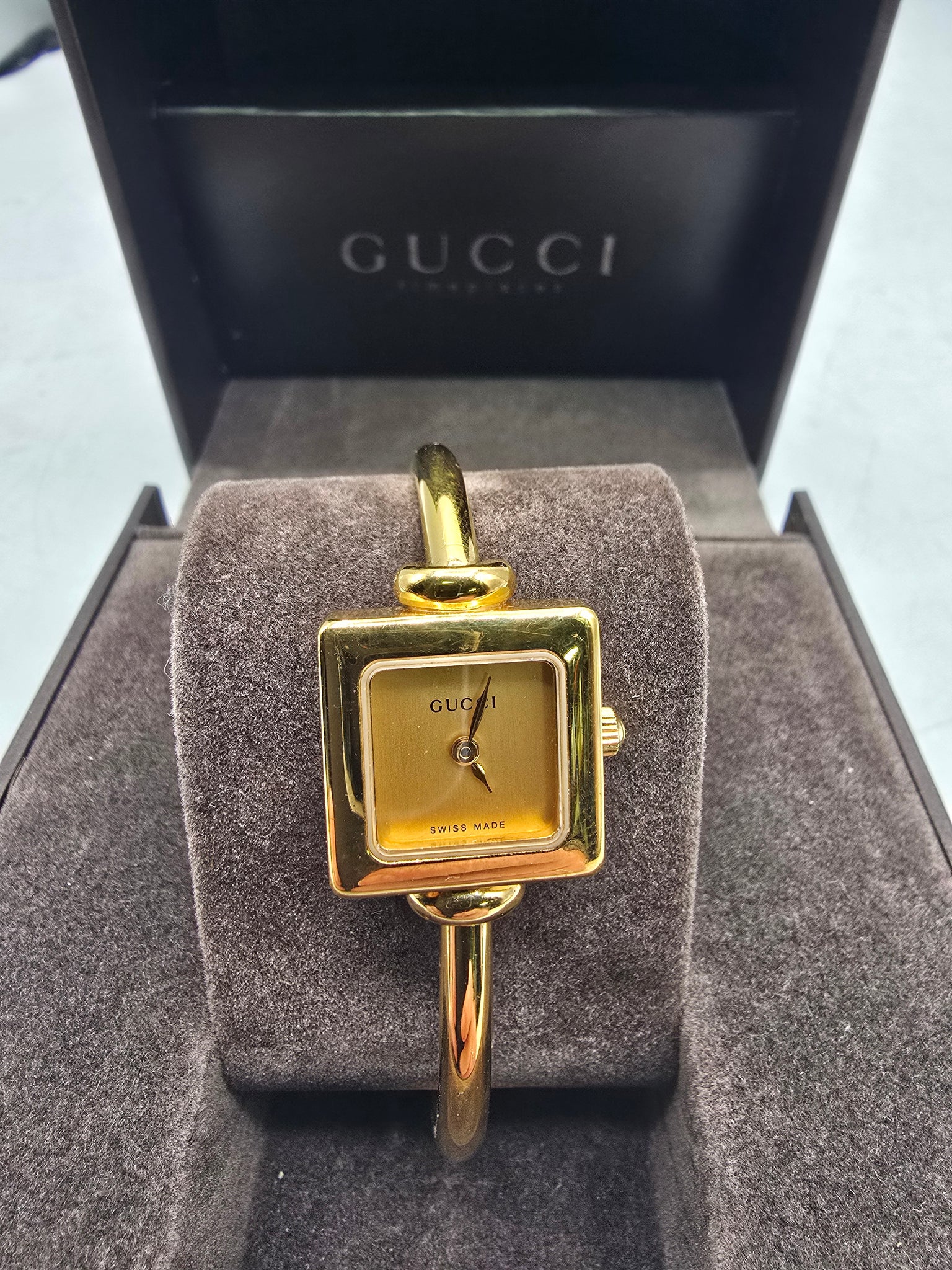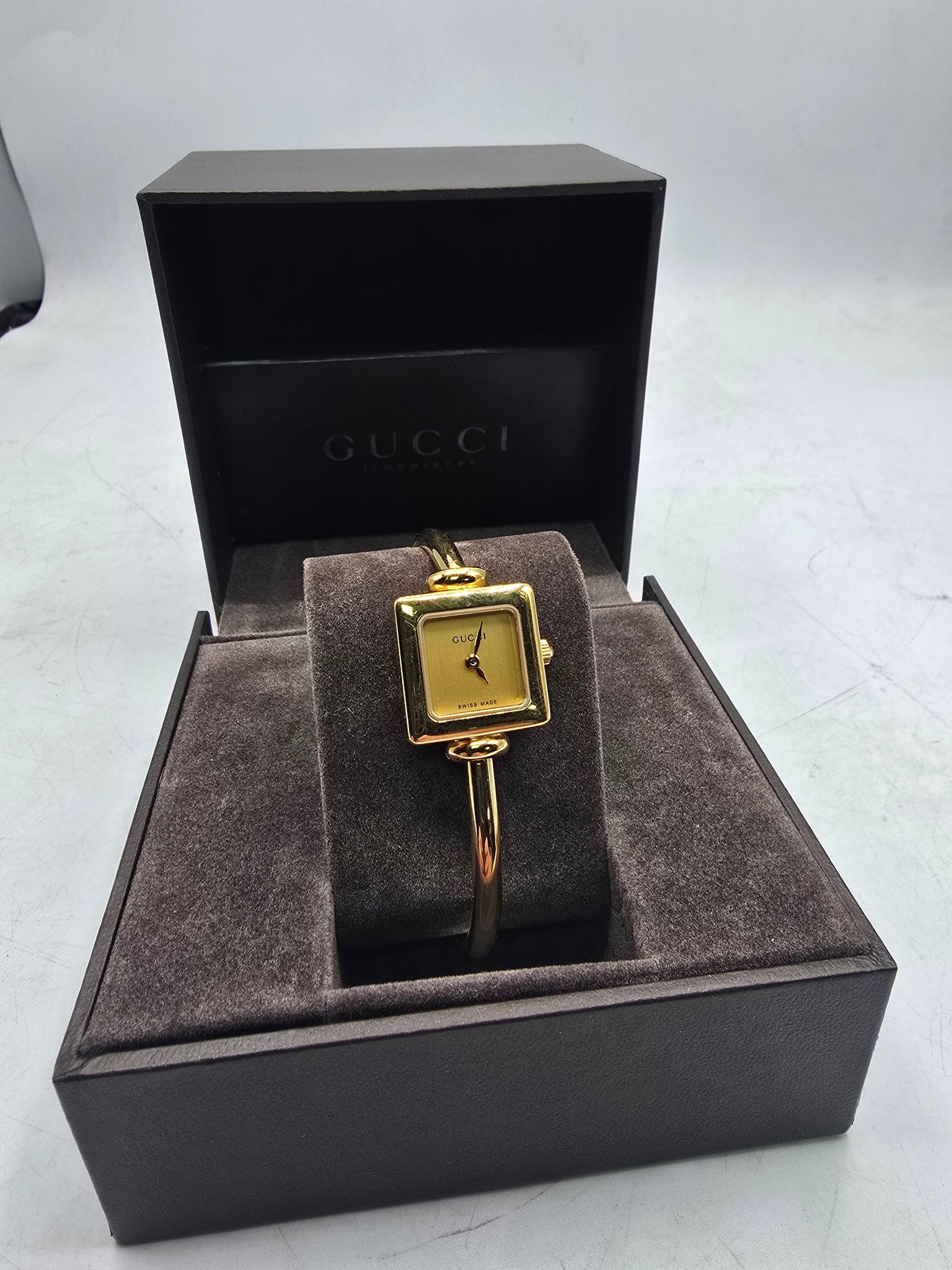 gucci ladies bangle watch boxed, good condition