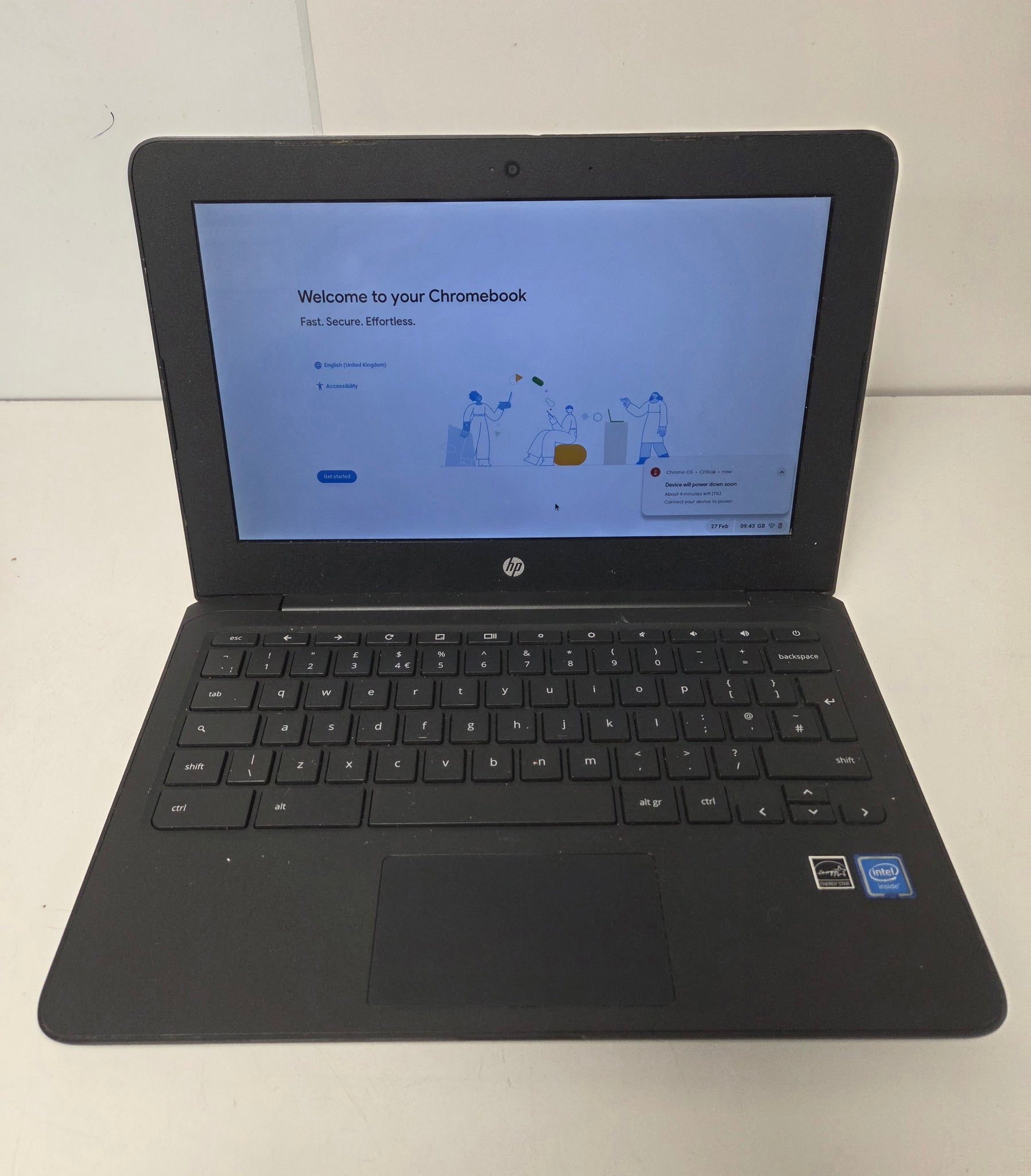 HP Chromebook 11a0b0000na Celeron N3350 processor, 4gb ram, 32Gb eMMc Storage
