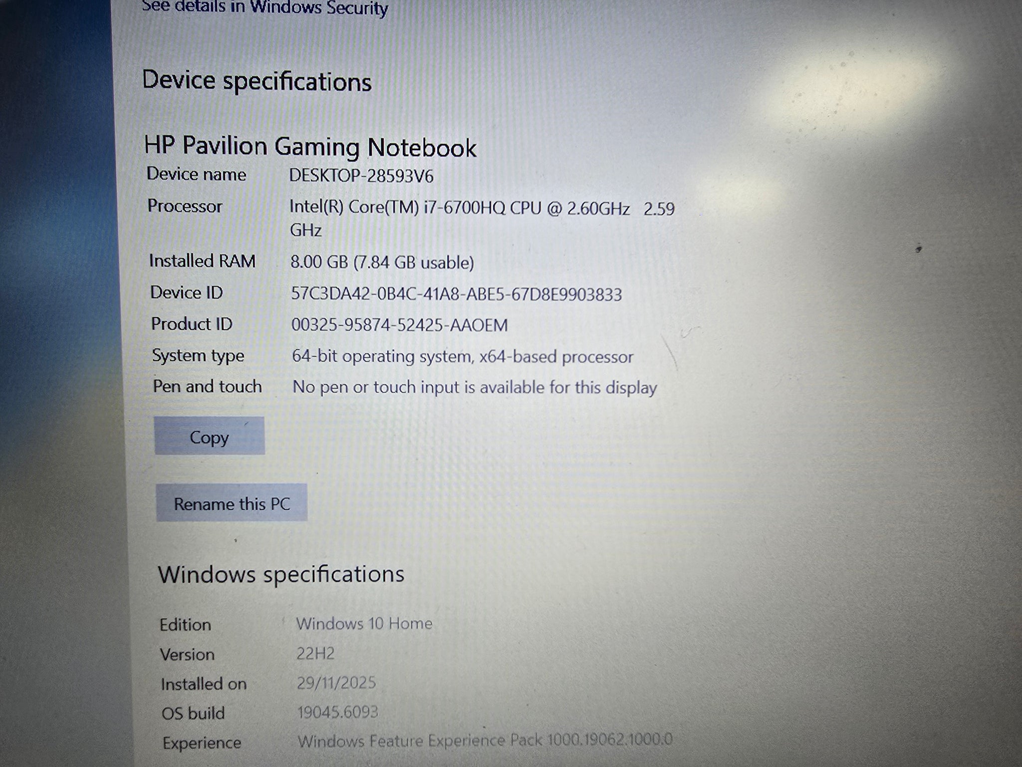 hp pavillion 17.6 laptop 8gb core i7 windows 10 unboxed, good condition