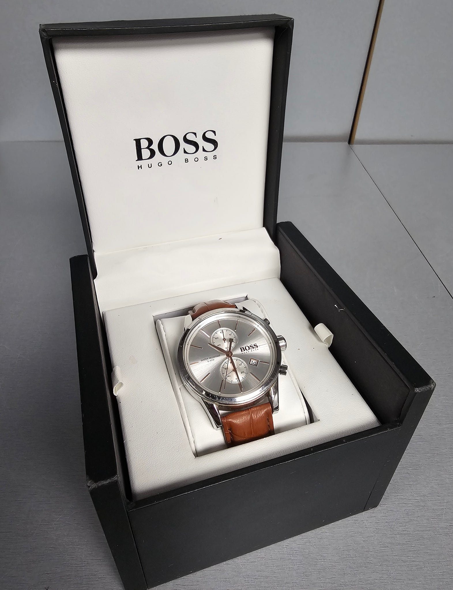 Specifications If you are fashion-conscious and also are looking for a timepiece that will not only stun you with its design but also its functionality, then go for the Hugo Boss Jet Men’s Leather Watch 1513280. Its silver coloured dial is housed in the stainless steel case and is protected by mineral glass. This battery-powered watch is 50 metres water-resistant and comes with index minute markers, date and chronograph functions. Secure its brown leather strap with the standard pin buckle.