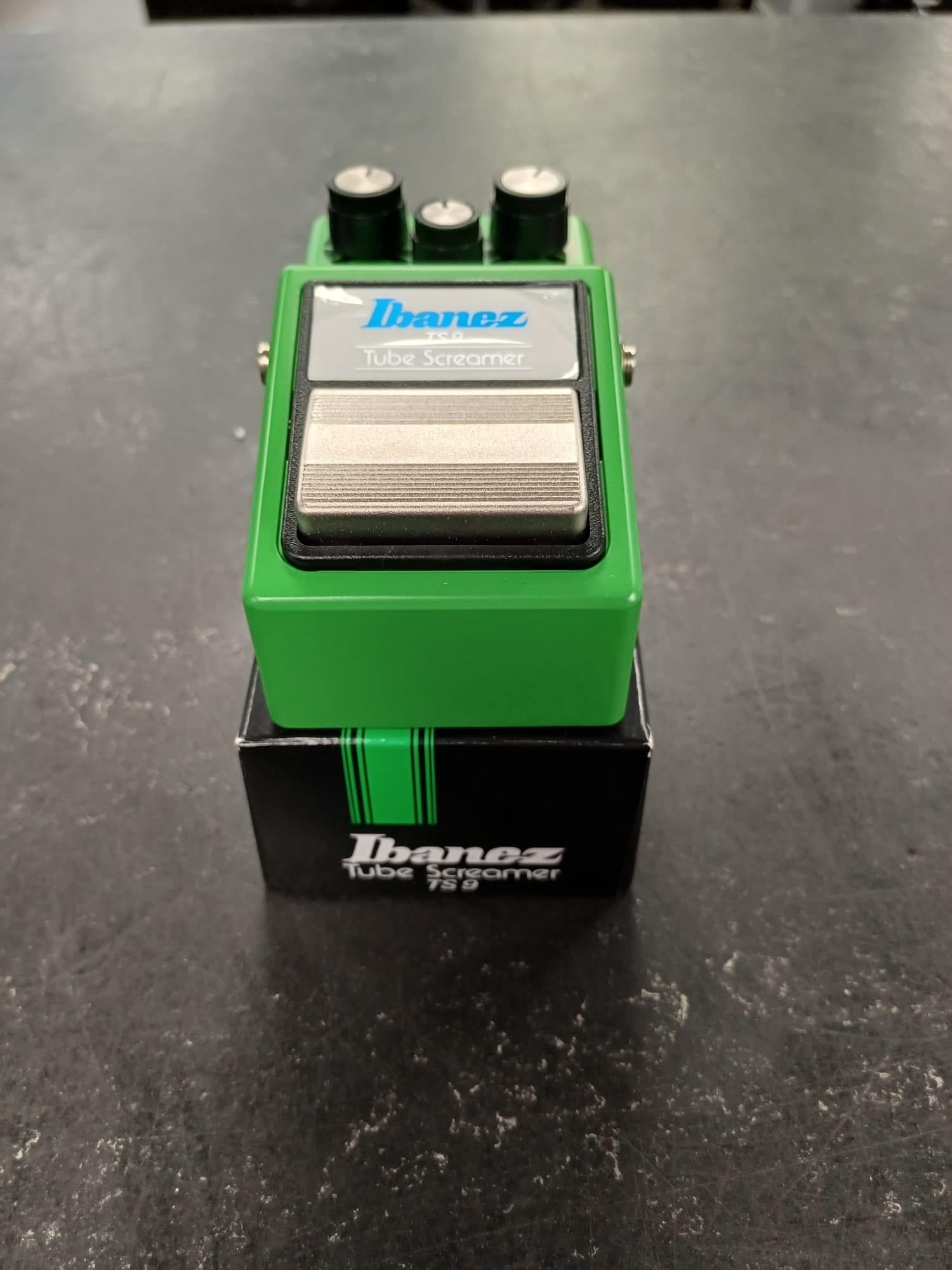 The Ibanez TS9 Tube Screamer is a legendary overdrive pedal that's been a staple on many iconic pedalboards. Its versatility and warm, bright tones make it perfect for various music genres. Key Features: - Drive Control: Adjusts the amount of overdrive, from mild and transparent to heavily distorted sounds - Tone Control: Shapes the treble content of your sound, allowing for bright and sharp or warm and mellow tones - Level Control: Sets the output volume, enabling seamless transitions between clean and overdriven sounds or boosting your signal for solos