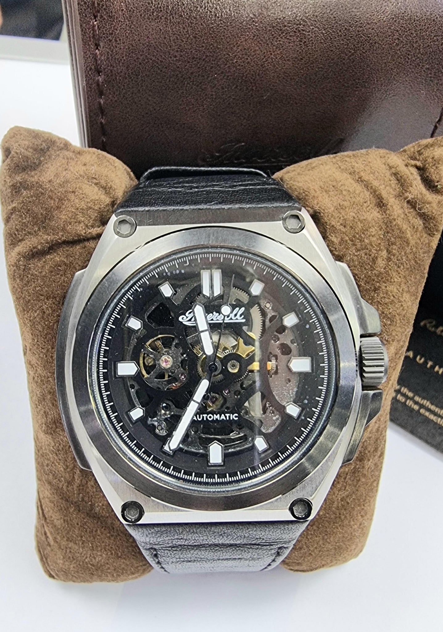Ingersoll The Motion I11702 is a practical and very impressive Gents watch. Case is made out of Plated Stainless Steel, which stands for a high quality of the item and the Skeleton dial gives the watch that unique look. The watch comes with an original box and a guarantee.