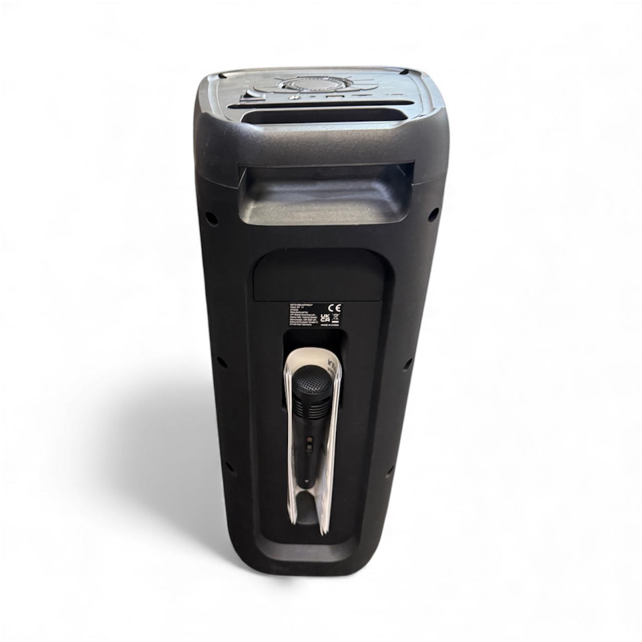 Make incredible memories that will last a lifetime with this colour-changing Bluetooth speaker by Intempo. With a wired microphone included, this portable audio player will allow you to host the best karaoke nights for all to enjoy. Boasting an ergonomic handle that also extends in length, this LED speaker can be carried to any function with maximum comfort. Whether at a summer barbeque or a party, this music player can keep the event going throughout the night with up to 10 hours play time. With an easy-to-use control panel, this speaker by Intempo can be simply navigated without drawing your attention away from guests. Essential for any event, this colour-changing portable speaker includes a rechargeable battery that has up to 10 hours play time. Developed to project loud music, this Bluetooth sound machine carries 100W pmpo that will fill the party with stereo sound quality. Designed with a wireless connection, this speaker allows guests to play their favourite songs with ease, encouraging fun for all. Created with an extendable tailgate handle, the music speaker allows you to take the party wherever you go sporting maximum comfort.