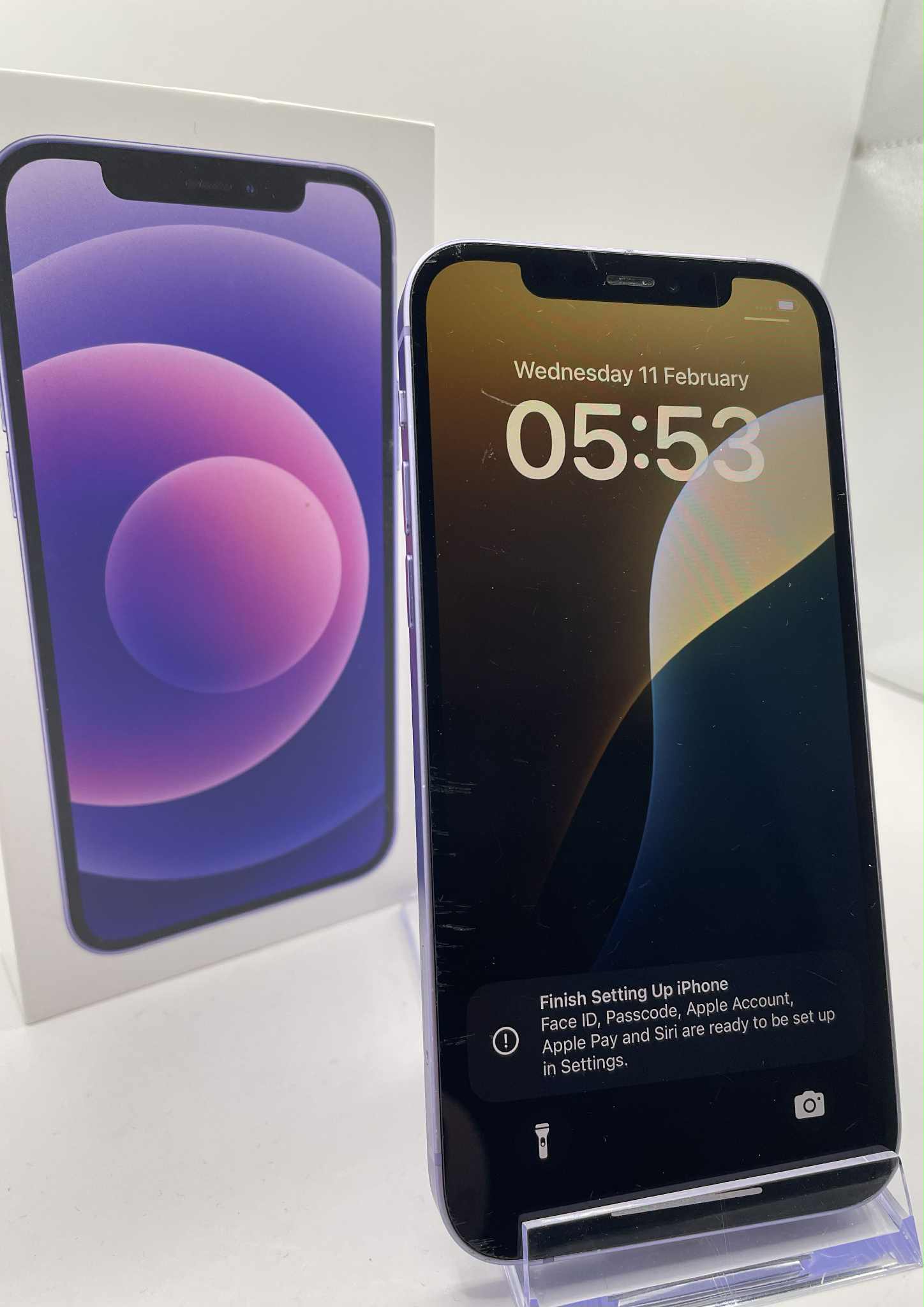 iPhone 12 - 64GB Battery health: 78% Grade C. Cosmetic scratches as it is seen in photos. Comes with the box. Doesn't include charging lead.