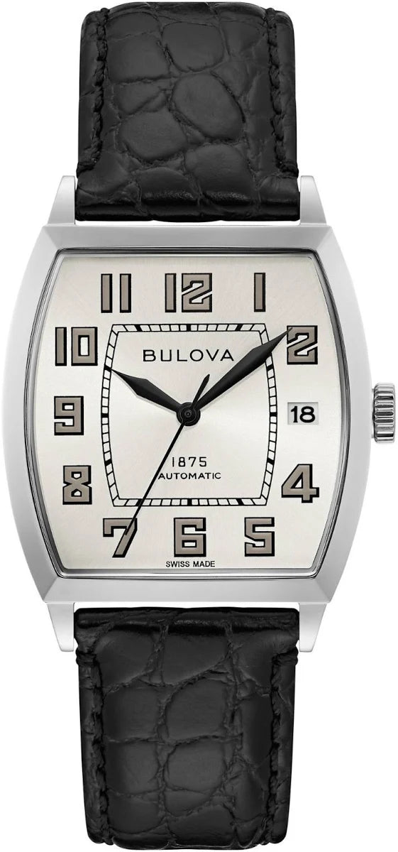 The Joseph Bulova Collection pays homage to the brand’s visionary founder. Stainless steel case with a beige sunray brushed dial and painted Arabic markers. Open case back showcasing the fine Swiss made 26-jewel automatic movement, featuring the Joseph Bulova signature, “1875” and “Swiss Made”, and a custom-designed rotor. Black leather alligator grain strap with the “Joseph Bulova” signature on the interior lining and a deployant closure with pushers. Domed sapphire crystal with anti-reflective coating. 38-hour power reserve. Limited to 350 pieces.