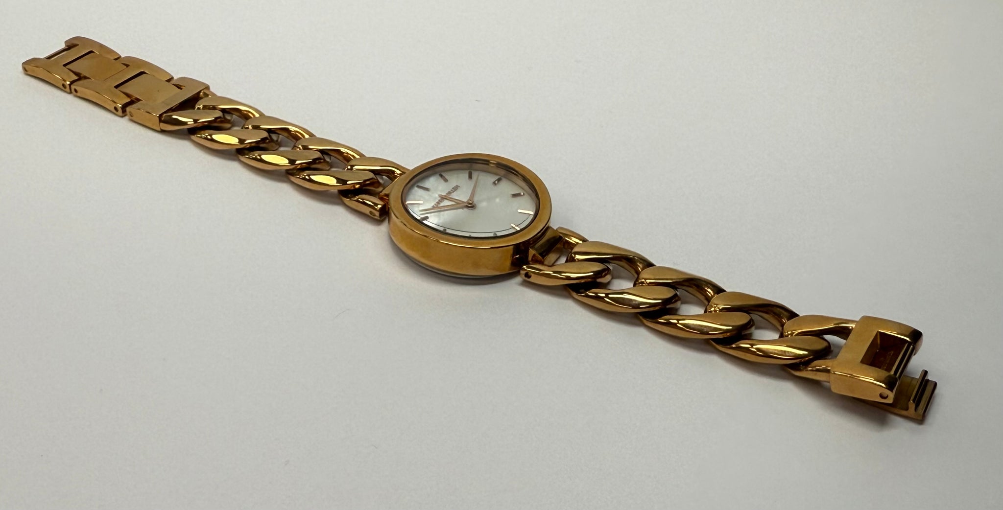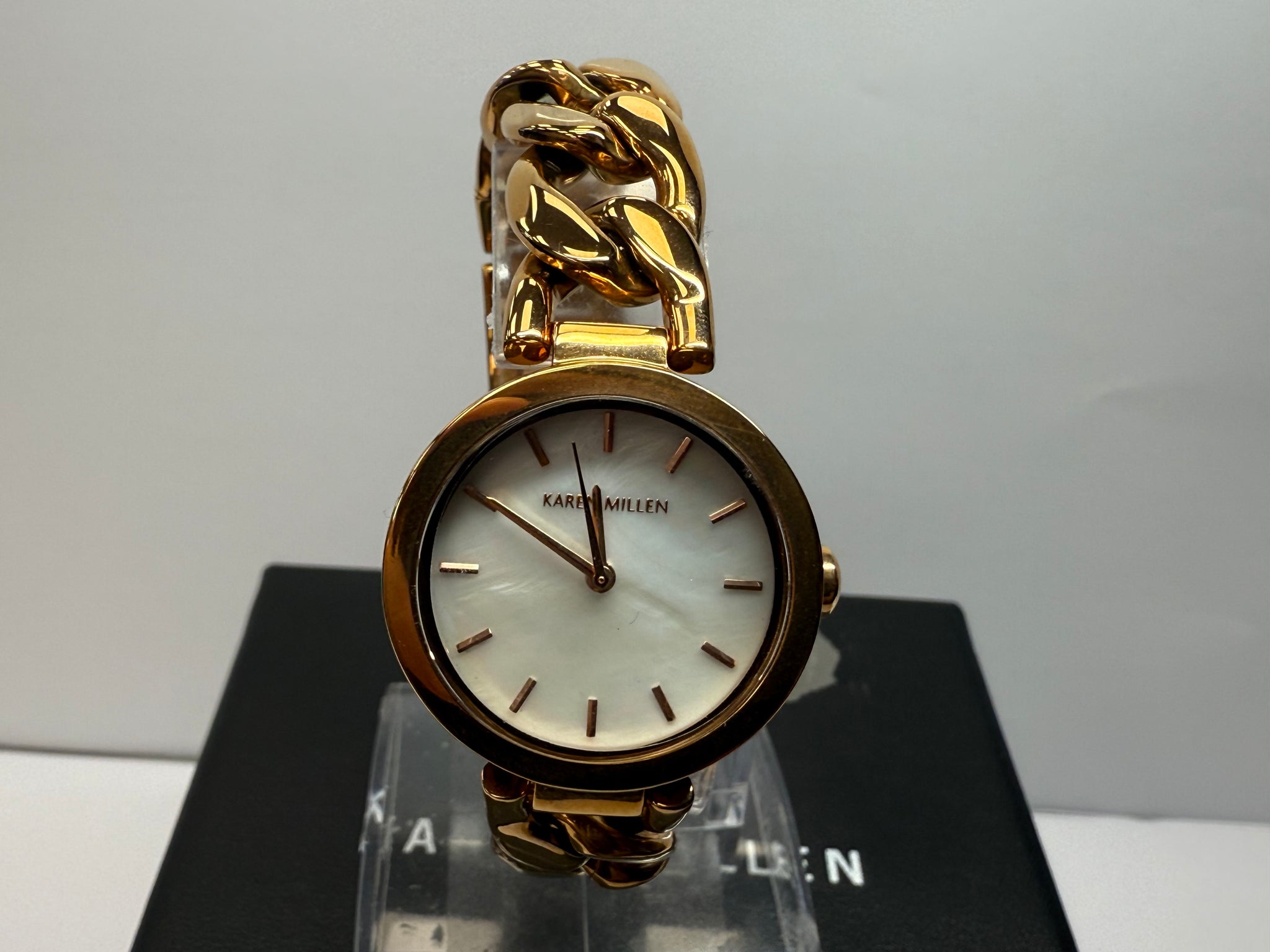 A lovely wrist watch made by Karen Millen, comes boxed with spare link and is in good condition, there is slight cosmetic wear on the box.