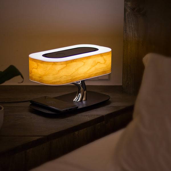 Effortless living, ambience and booming sound. No more fumbling around with wires... that’s old school! Set the mood and sleep well knowing you and your phone will be ready to attack the day. The Light of Life is the perfect bed-side companion. You love music. And you want it effortless. You’ll wonder why you did it any other way. The Light of Life - a single, uniquely shaped and astounding art piece that functions more than just a mere lamp. It's sleek and exhibits a thin, cherry wood shade, and brightness that can be smoothly adjusted via touch controls on the base. In addition, the base of the lamp also has an integrated wireless charging pad, so you can charge any phone wirelessly! This stunning lamp even comes with a built-in neodymium Bluetooth speaker. Just pair your device to the lamp, and play your favourite music wirelessly. You can even use the touch controls on the lamp to skip songs and adjust the volume. Say good bye to dull and unpleasing desk lamps.