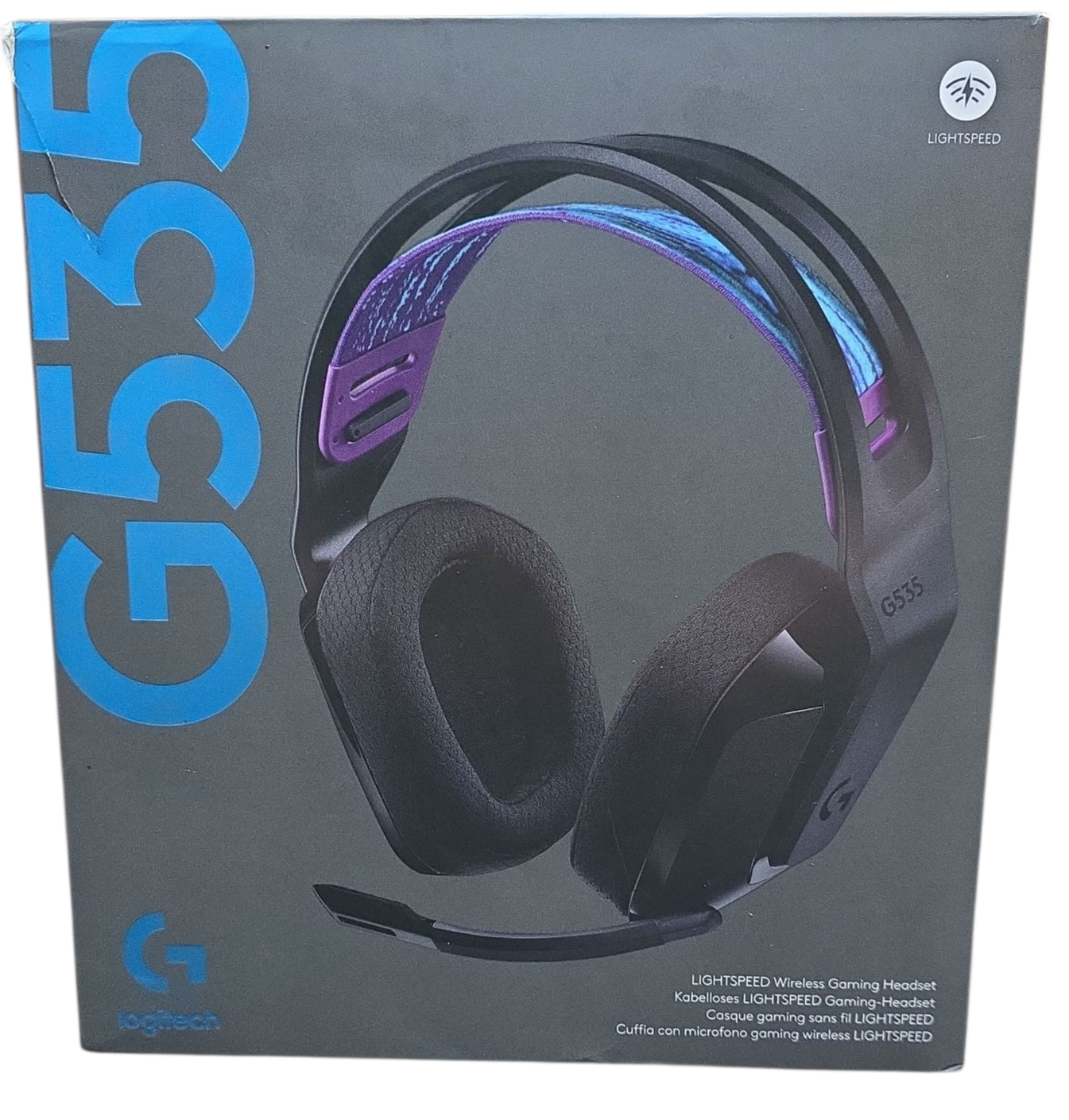 Play at lightspeed G535 is designed for low-latency performance, freedom from wires and lasting comfort for all your gaming sessions. Enjoy advanced lightspeed wireless, 33-hour battery life and 40 mm drivers for crystal-clear and booming sound. Weighing just 236 grams with an adjustable headband and soft memory foam earpads to ensure all-day comfort. Lightspeed wireless Low-latency, high-performance, pro-grade connectivity. Incredible 33 gaming hours of battery life. Up to 12 meters of reliable wireless freedom. Lightweight and comfortable At only 236 grams, G535 is smaller and lighter than G733. Suspension headband design helps distribute weight and relieve pressure points. While soft memory foam ear cups and sports mesh material ensure comfort during gaming sessions. Plug and play Optimize your game time with an easy-to-use plug-and-play wireless gaming headset. G535 uses a USB receiver compatible with PC and PlayStation. On-ear controls Volume roller is located directly on the ear cup to quickly turn up your game or music. Flip up the mic to instantly mute and move it out of the way. 40 mm drivers With 40 mm neodymium drivers, G535 delivers crisp, clear and deep stereo sound that makes your game come alive. Adjustable, reversible headband Adjust the headset for a better fit. The soft elastic headband can be adjusted to better conform to your head size. The headband is reversible and washable, so your headset always looks fresh. Discord certified G535 is Discord Certified to guarantee crystal clear communication performance with excellent sound and voice clarity.