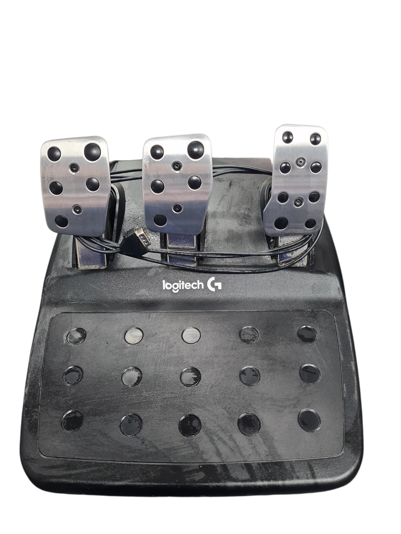 Logitech G920 Driving Force Racing Wheel+Pedals (Xbox One+PC) w/PSUKey Specifications & Physical Dimensions: Rotation: lock-to-lock. Force Feedback: Dual-motor with anti-backlash helical gearing. Wheel: 270mm (H) x 260mm (W) x 278mm (D); 2.25 kg. Pedals: 167mm (H) x 428.5mm (W) x 311mm (D); 3.1 kg. Materials: Leather (wheel cover), Aluminum (spokes), Steel (shaft/pedals). Connectivity: USB (wired). Power Supply: Included in the box, required for force feedback. Compatibility: Xbox Series X|S, Xbox One, Windows 10/11. Controls: D-Pad, console buttons, paddle shifters. Features: Nonlinear brake pedal, self-calibrating, carpet grip system