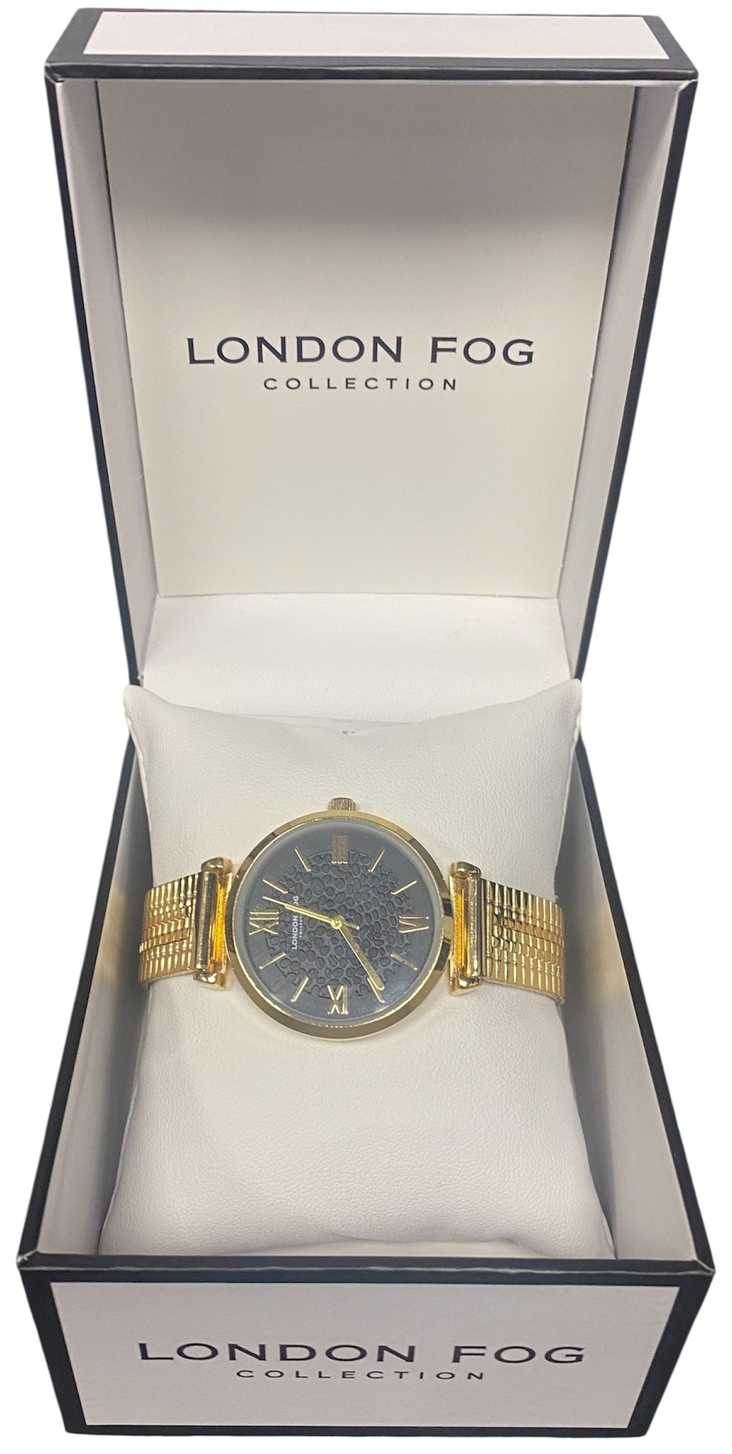 This London Fog fashion elegant watch is perfect for that special lady in your life. Classy watch airs with any outfit, day or night. Style #LF013 Movement- Japanese quartz Round case-alloy material, 32mm Strap- Alloy strap with buckle closure, approximate adjustable length- 8.5" Water resistance up to 1 ATM 5 year manufacturer limited warranty Watch comes in a gift box Wipe Clean