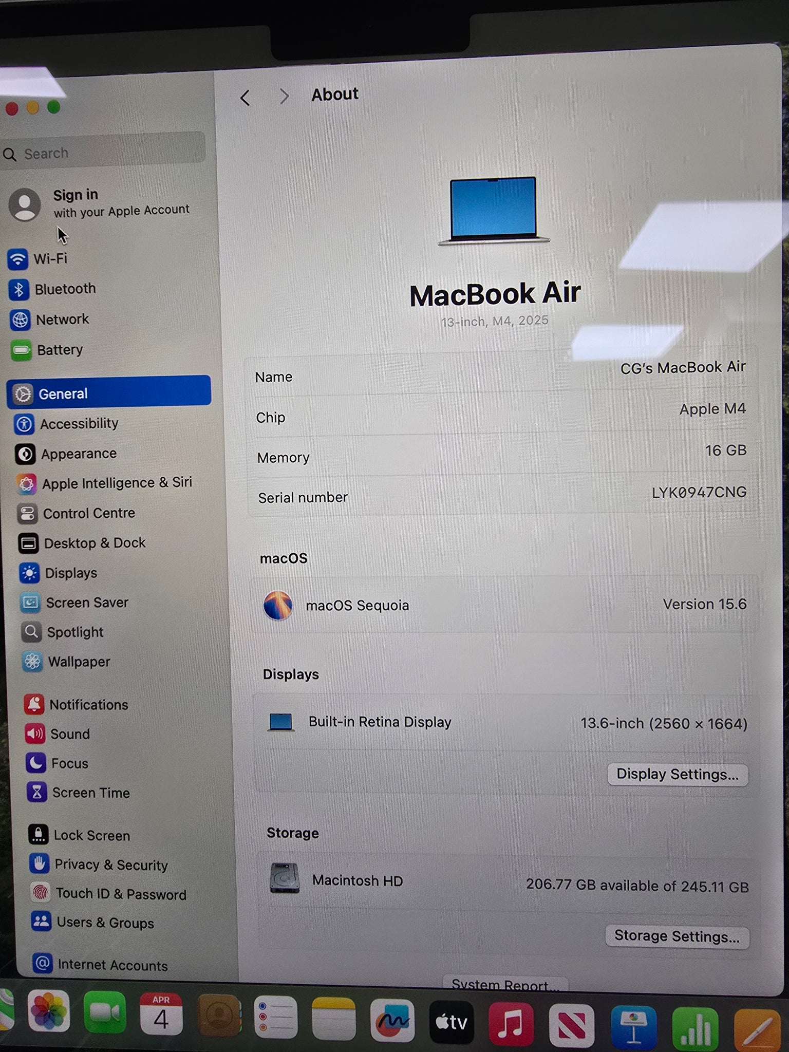 MACBOOK AIR M4 CHIP 16GB 256GB STORAGE * 24 MONTH WARRANTY* BOXED, EXCELLENT CONDITION, BATTERY HEALTH 100% CYCLE COUNT 2