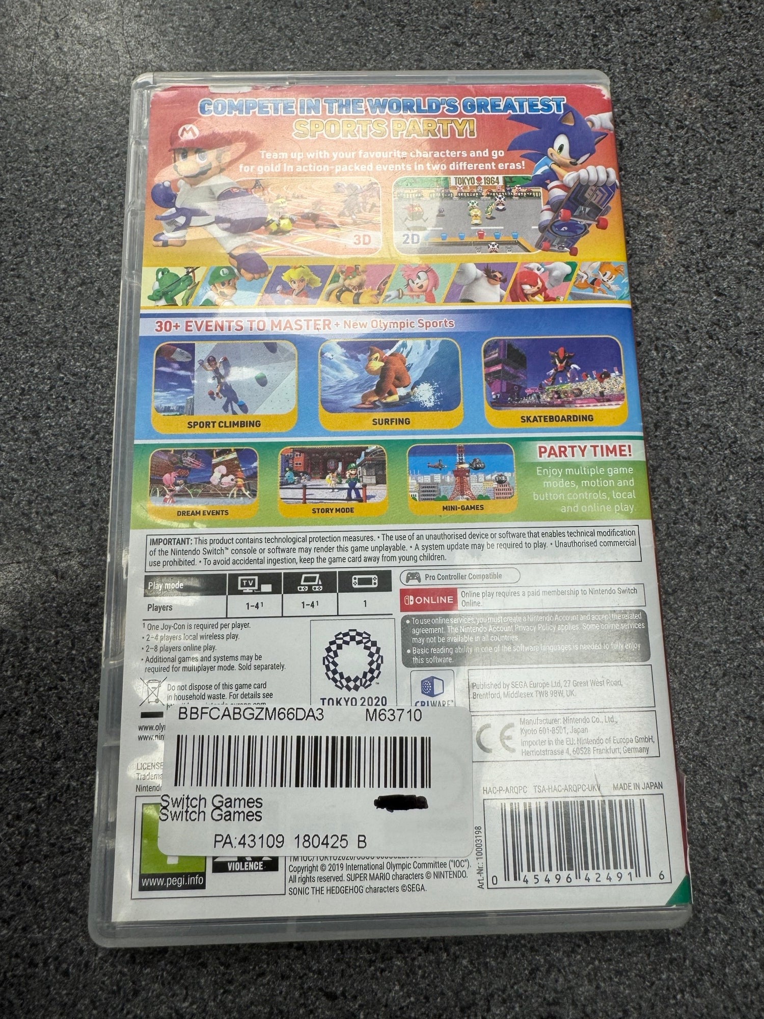 Mario & Sonic at The Olympic Games for Switch. The case and cartridge are in good condition with no damage