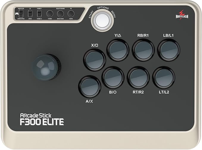 Compatible with Switch/Switch 2, Xbox Series X, PS4,PS3,Xbox One/S, Xbox 360, PC Windows, macOS, Steam Deck, Android, NEOGEO mini and NeoGeo Arcade Stick Pro. F300 Elite is compatible with PS5 by MAYFLASH Magic-S Ultimate Adapter or MagicBoots for PS4 PS5 Converter. By using premium quality Sanwa components—9 highly responsive buttons and a precision 4-way joystick, you can reliably strike instantly and surely, game after game, while maintaining peak performance Supports the XINPUT and DINPUT when being used on PC. Supports Turbo. The F300 Elite was built for modding enthusiasts, so the inside of the platform is accessible for further customization, and the joystick as well as buttons can be switched to suit your playstyle.