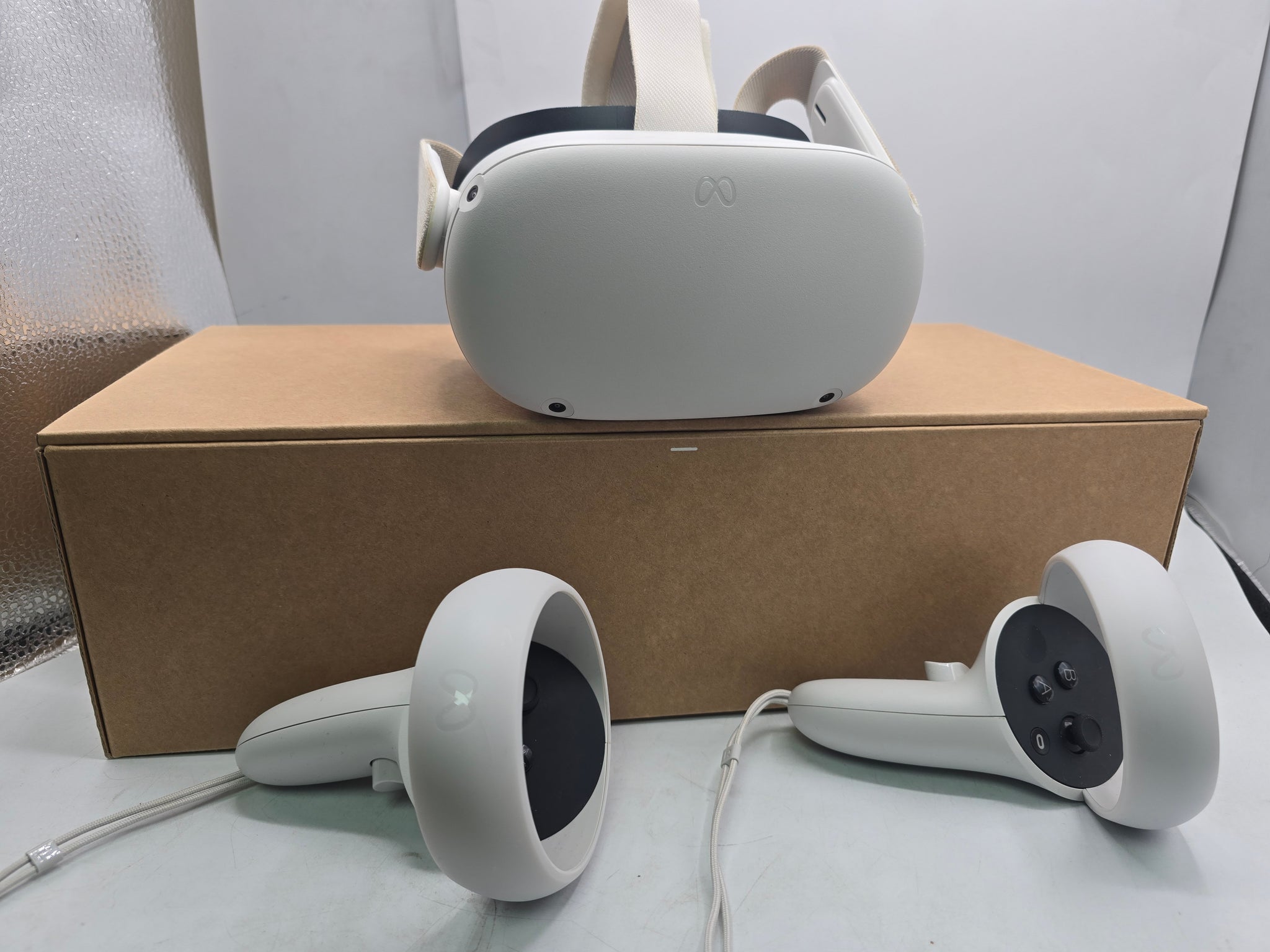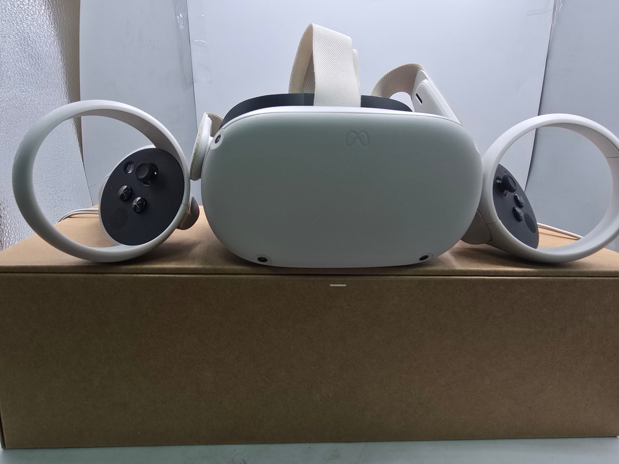 Meta/Oculus Quest 2 VR Headset (With Controllers) - *24 month agreement* boxed, good condition but some discoloration on straps