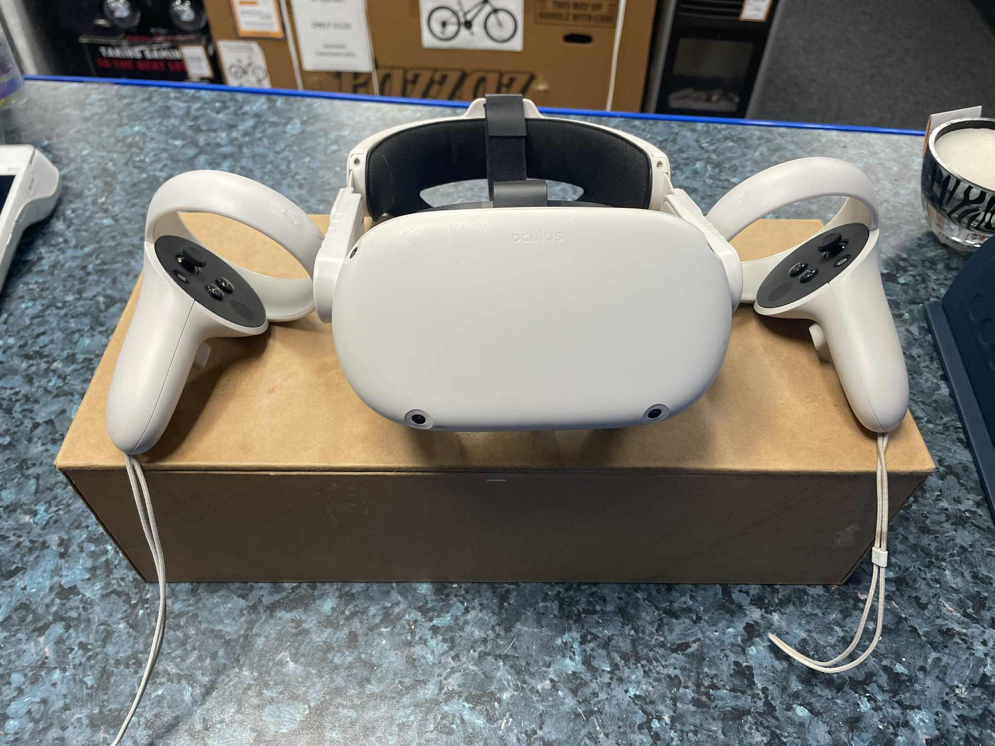 Meta Quest 2 128gb storage Comes boxed Doesn't come with charger; controllers don't come with batteries Great working condition; fully tested in store Comes with 6 month warranty Comes with new face pad Comes with new elite head strap