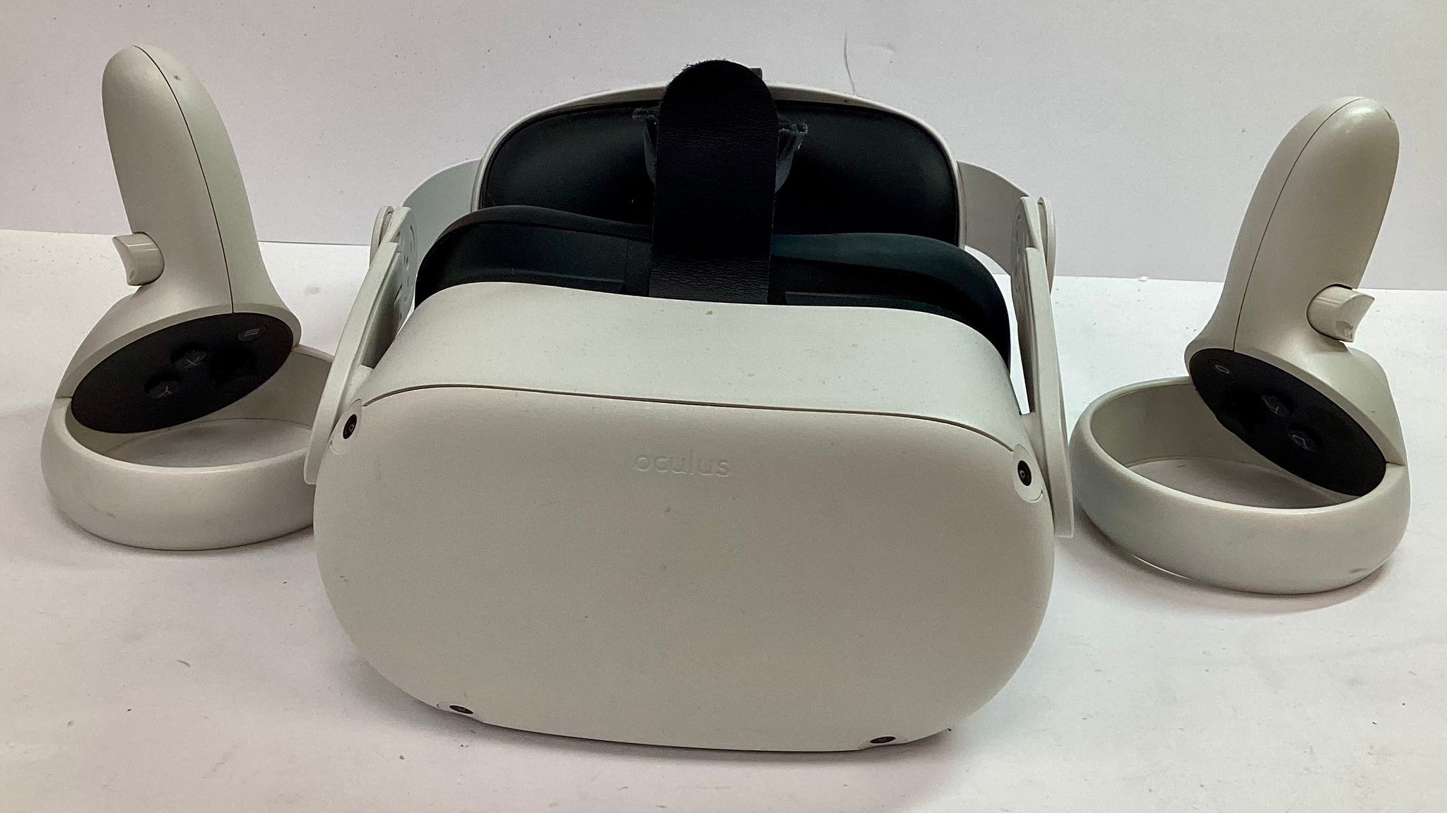 Meta quest 2 with 256gb storage, also comes with elite strap. Note the controllers don’t have the straps on.