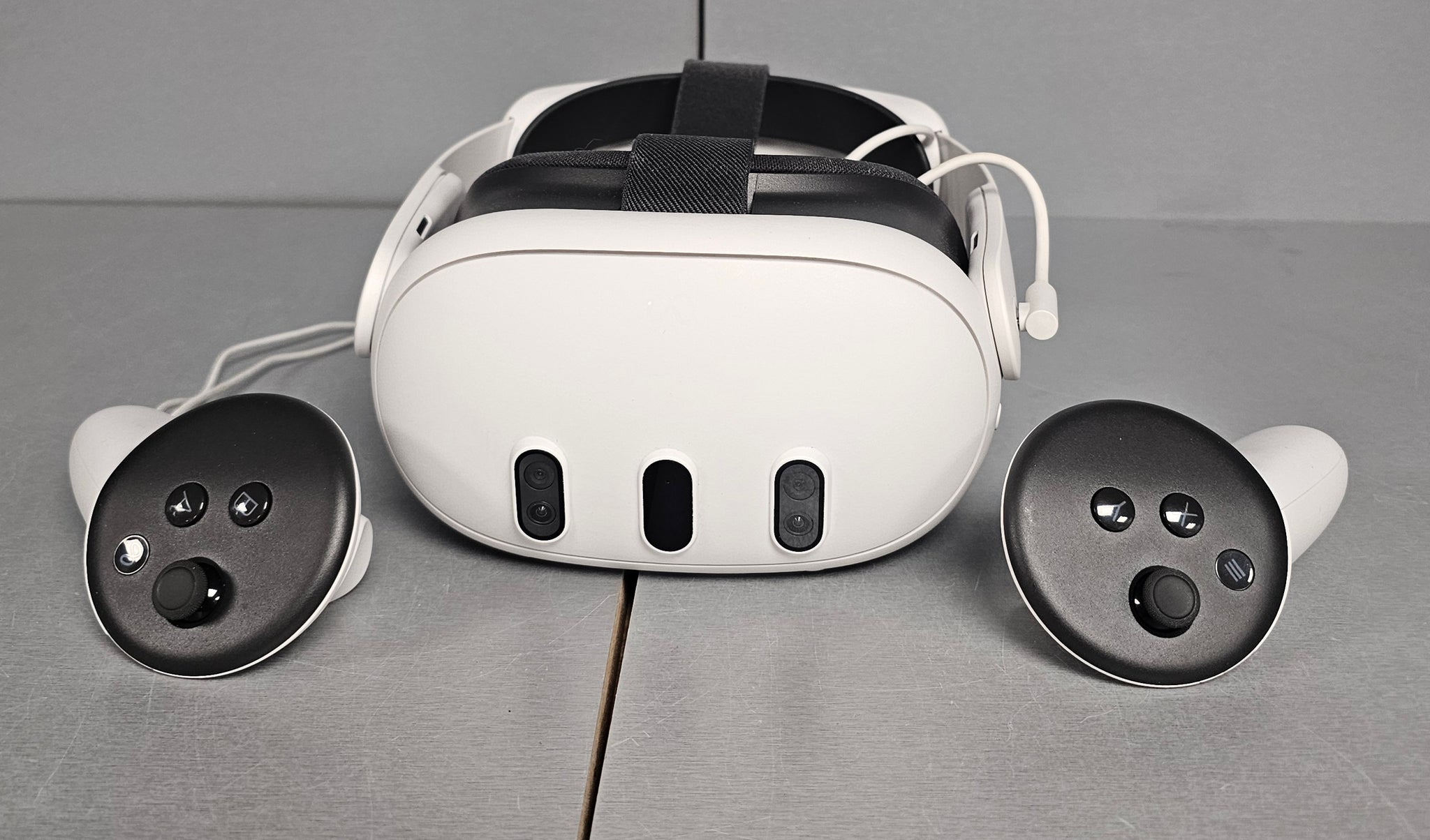Product Description Blend the virtual and physical with breakthrough mixed reality Bring virtual elements into your physical space with natural interactions. High-fidelity, full-colour. Pass-through keeps your surroundings in sight, while stereoscopic depth perception allows you to interact with characters or objects in the room around you. Surround yourself in 3D sound With enhanced sound clarity and an audio range that's 40 percent louder than Oculus Quest 2, all your favourite apps become more immersive. Stream films by creating the ultimate home cinema within your headset, or play games backed by a soundtrack of booming bass that brings you straight into the action. Dazzling graphics Delve deeper with lifelike experiences - thanks to 4K plus Infinite Display resolution. You can also see more with an increased field of view (104 degree horizontal and 96 degree vertical) that extends your peripheral vision within virtual worlds. Touch plus controllers for experiences you can feel Feel like you're actually swinging a saber or casting a fishing line with TruTouch haptics that let you react to every experience as if you're physically there. Redesigned to help you find the perfect fit Discover the setup that works best for you, including options that let you wear your headset over glasses - or accommodate different hairstyles and face shapes. Technical details: 4K+ Infinite Display, 2064 x 2208 resolution per eye with 25PPD and 1218 PPI Pancake lens provides a slimmer optic profile 110 degrees horizontal and 96 degrees vertical field of view Integrated stereo speakers with 3D spatial audio Works with Oculus Link and Air Link on PC 2 RGB Color cameras and depth projector 4 IR cameras and 2 RGB cameras Supports 90 / 120 Hz refresh rate Snapdragon XR2 Gen 2 Processor 512GB internal memory 8GB RAM Wi-Fi 6E External LED